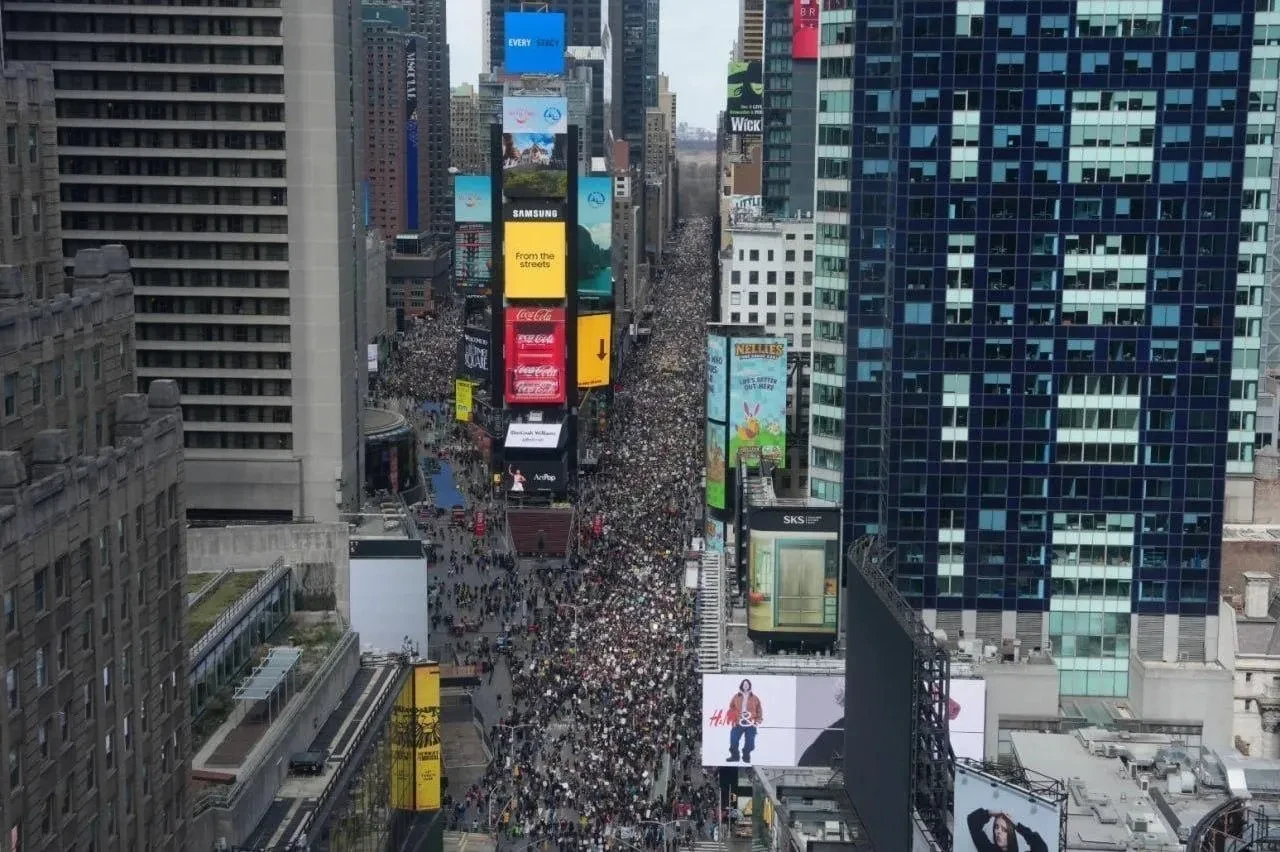 Накануне в США прошли массовые антиправительственные митинги, на улицы крупных городов вышли десятки тысяч протестующих. Всего, по данным полиции, в США прошло более 3 тысяч акций против Трампа. Американцы выступали под лозунгом «нет королям», заодно протестуя и против войны в Иране.