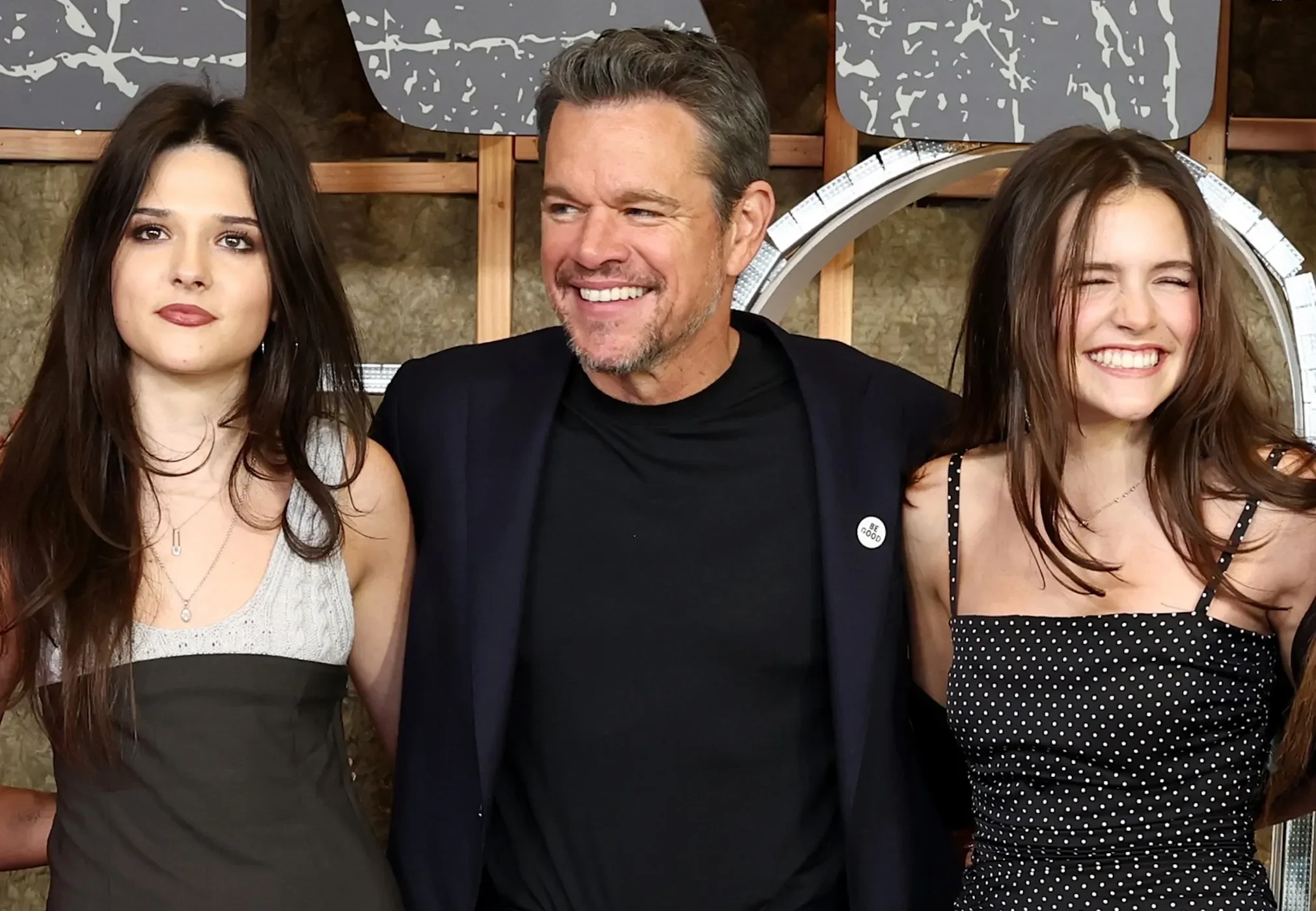 55-летний Мэтт Деймон с улыбкой позировал на дорожке вместе со своей семьёй. Его супруга Лусиана, которая также является одним из продюсеров фильма, пришла в красном платье. 19-летняя дочь пары Изабелла для мероприятия выбрала трендовое платье-майку, 17-летняя Джиа надела комбинацию из шёлка, а 15-летняя Стелла — платье в горошек.