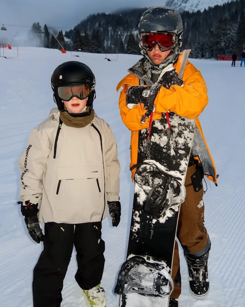 Звёздная парав компании восьмилетнего сына Джека и трёхлетней дочери Изабеллы, а также друзей с детьми отдыхает в снежном Эрвальде (Австрия). Семьи катаются на лыжах, отдыхают в местном отеле и много фотографируются. "Счастливые семьи", — подписала фото возлюбленная британского актёра Рози Хантингтон-Уайтли.