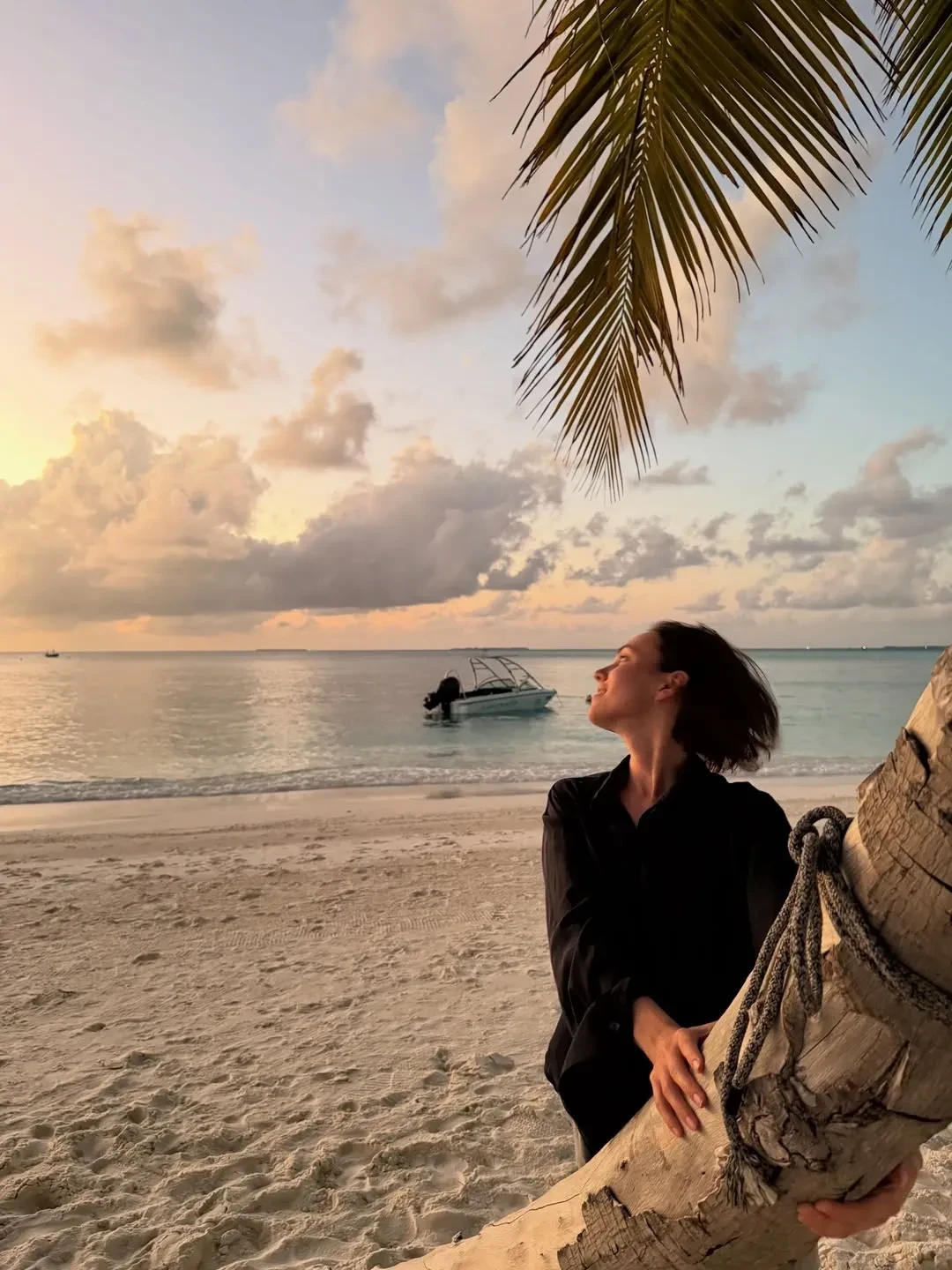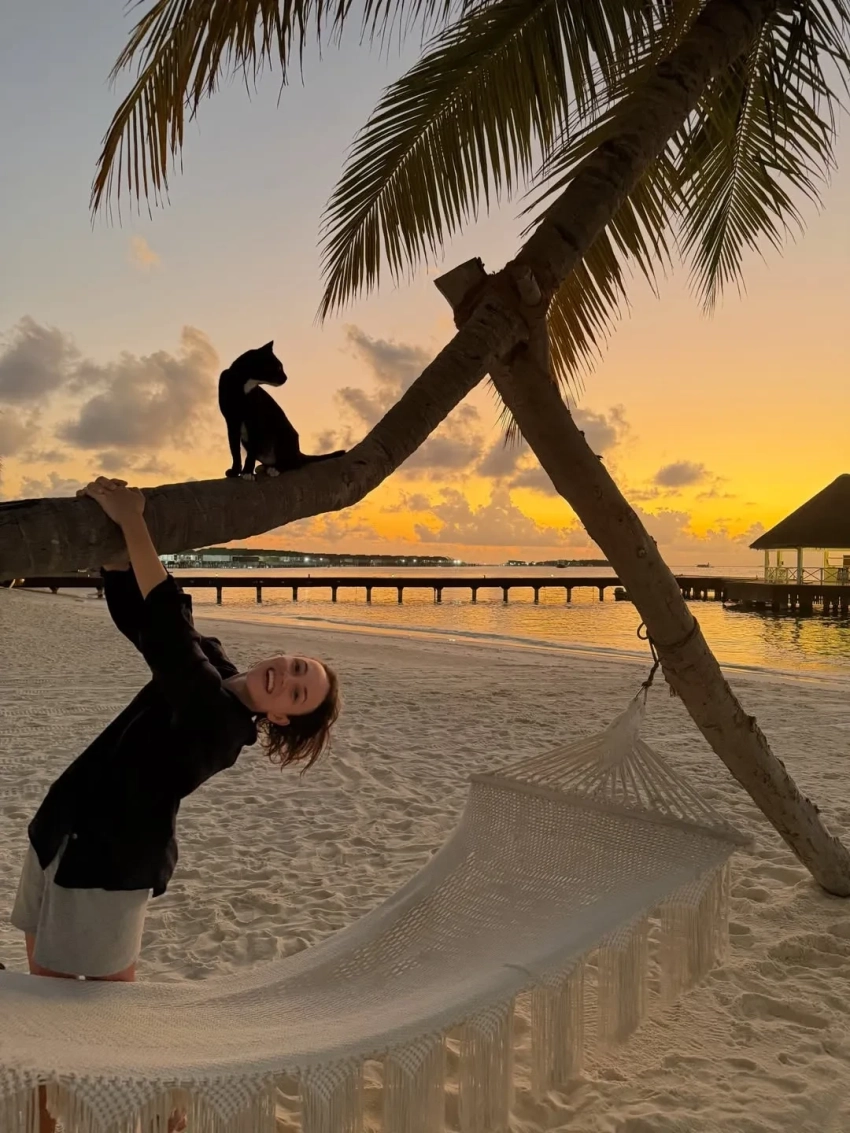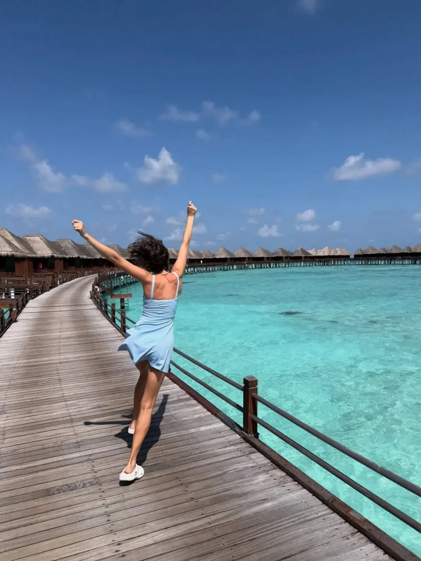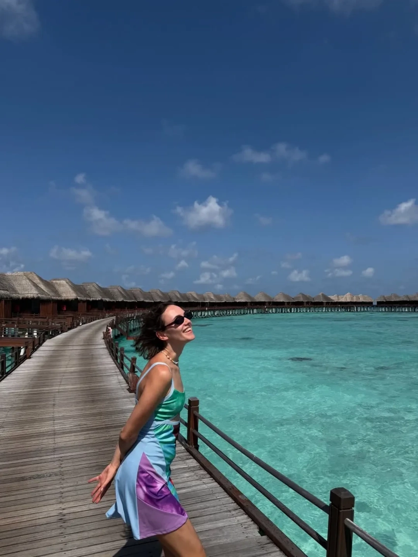 30-летняя Стася Милославская отдыхает на Мальдивах вместе с женихом, 22-летним футболистом ЦСКА Егором Ушаковым. Отпускными фото актриса поделилась в соцсетях.
