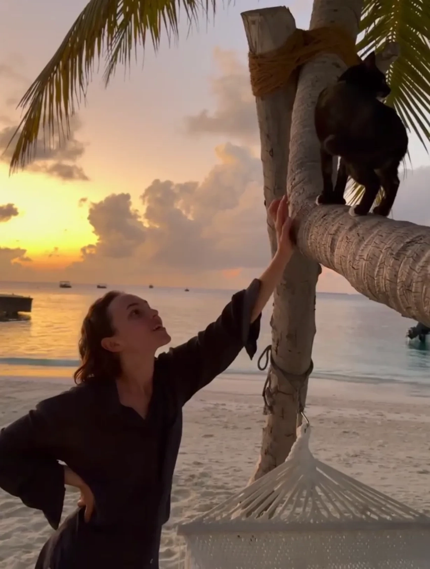 "Счастливые дни", — подписала снимки Милославская, на которых они с Ушаковым позируют на пляже и вилле, встречают закаты и гуляют по острову.