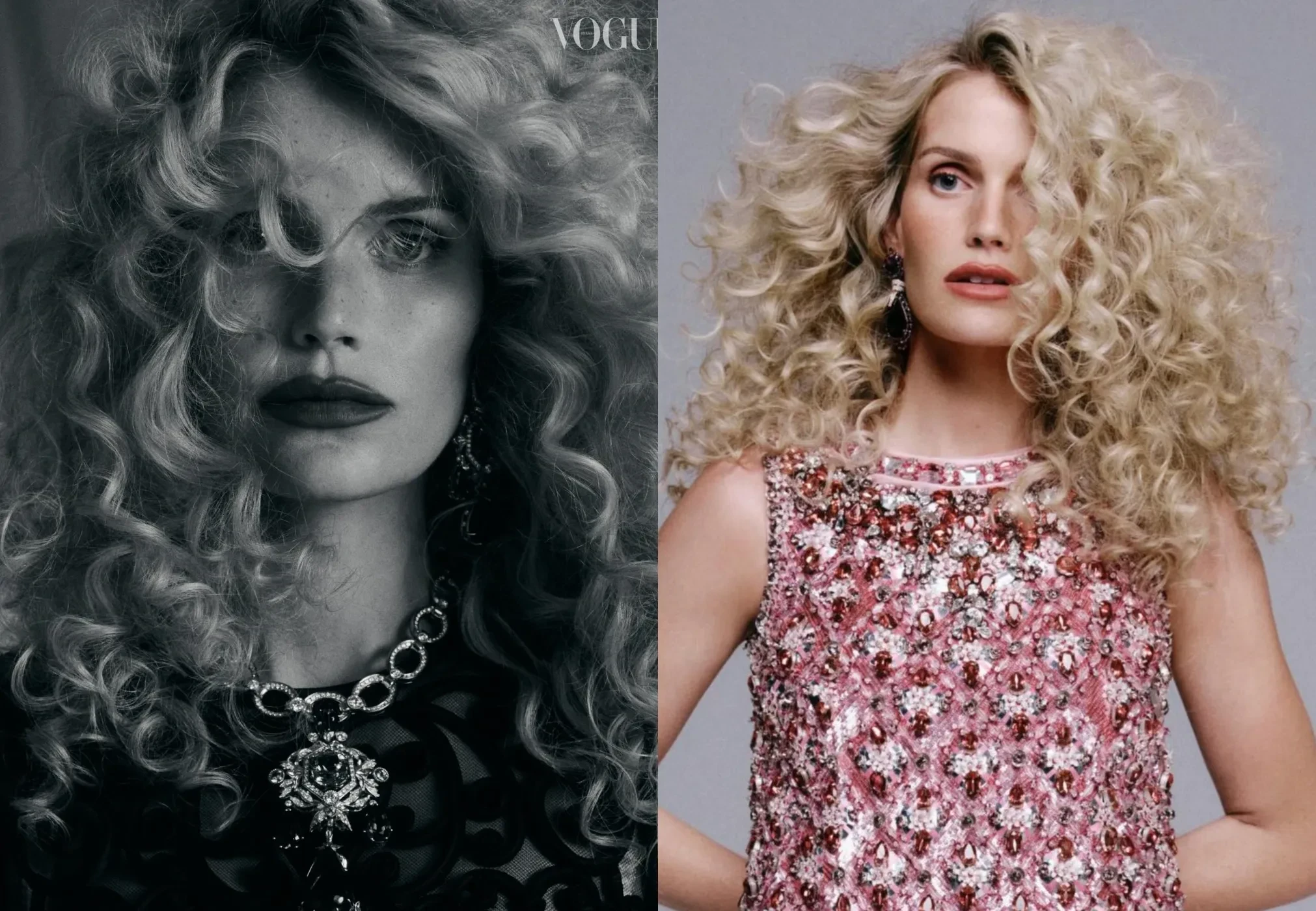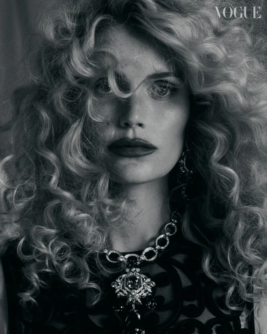 В объективе фэшн-фотографа Хорхе Эвальда 35-летняя британская аристократка позирует в нарядах и украшениях от Dolce & Gabbana. Специально для съёмки ей сделали объёмную прическу с мелкими кудрями, а также макияж с акцентом на губы.