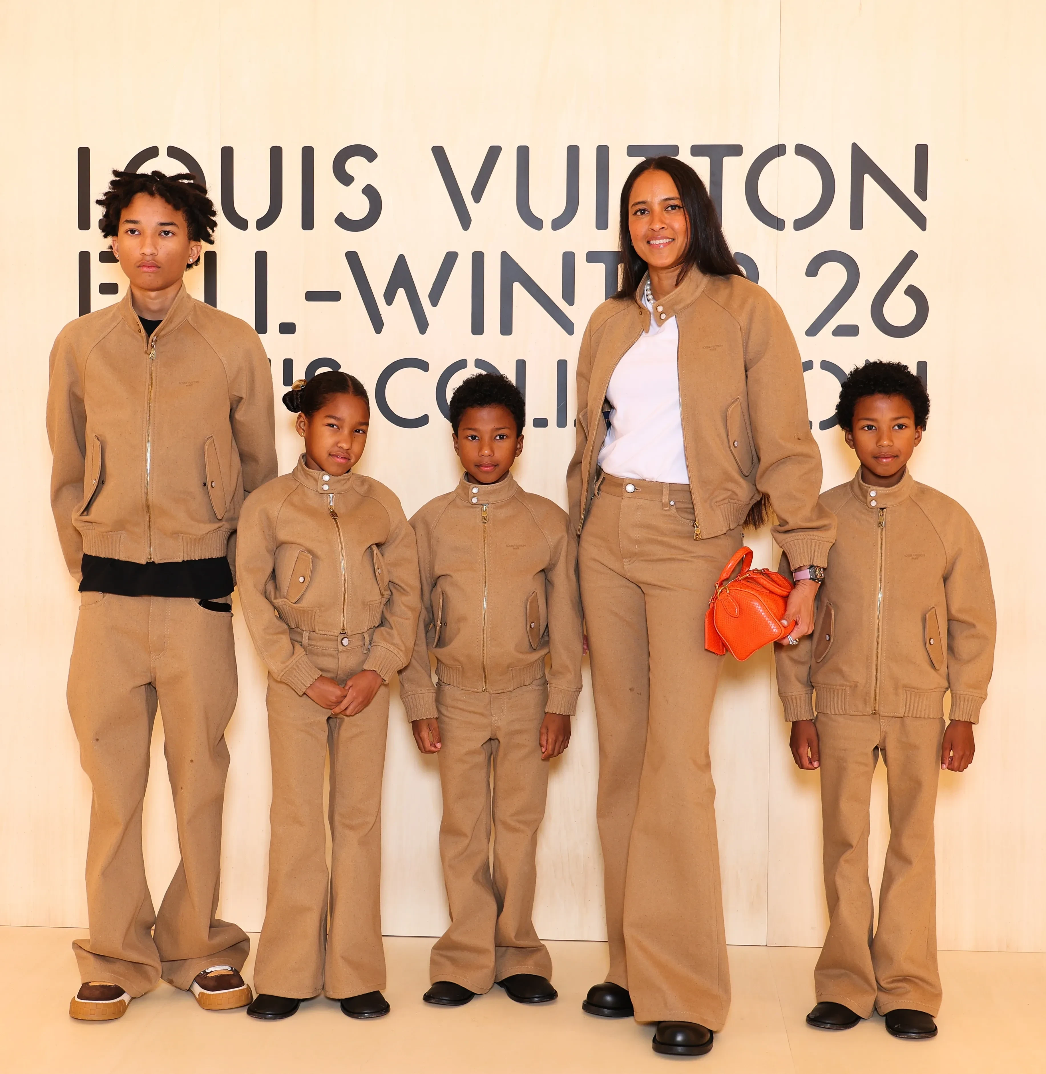 24-летний Лукас Портман пришёл на показ в кожаном плаще, а 36-летний Крис Браун позировал в розовом кардигане и брюках-клёш. Хелен Ласичан надела одинаковые костюмы с детьми, а Джон Ледженд примерил костюм песочного оттенка.