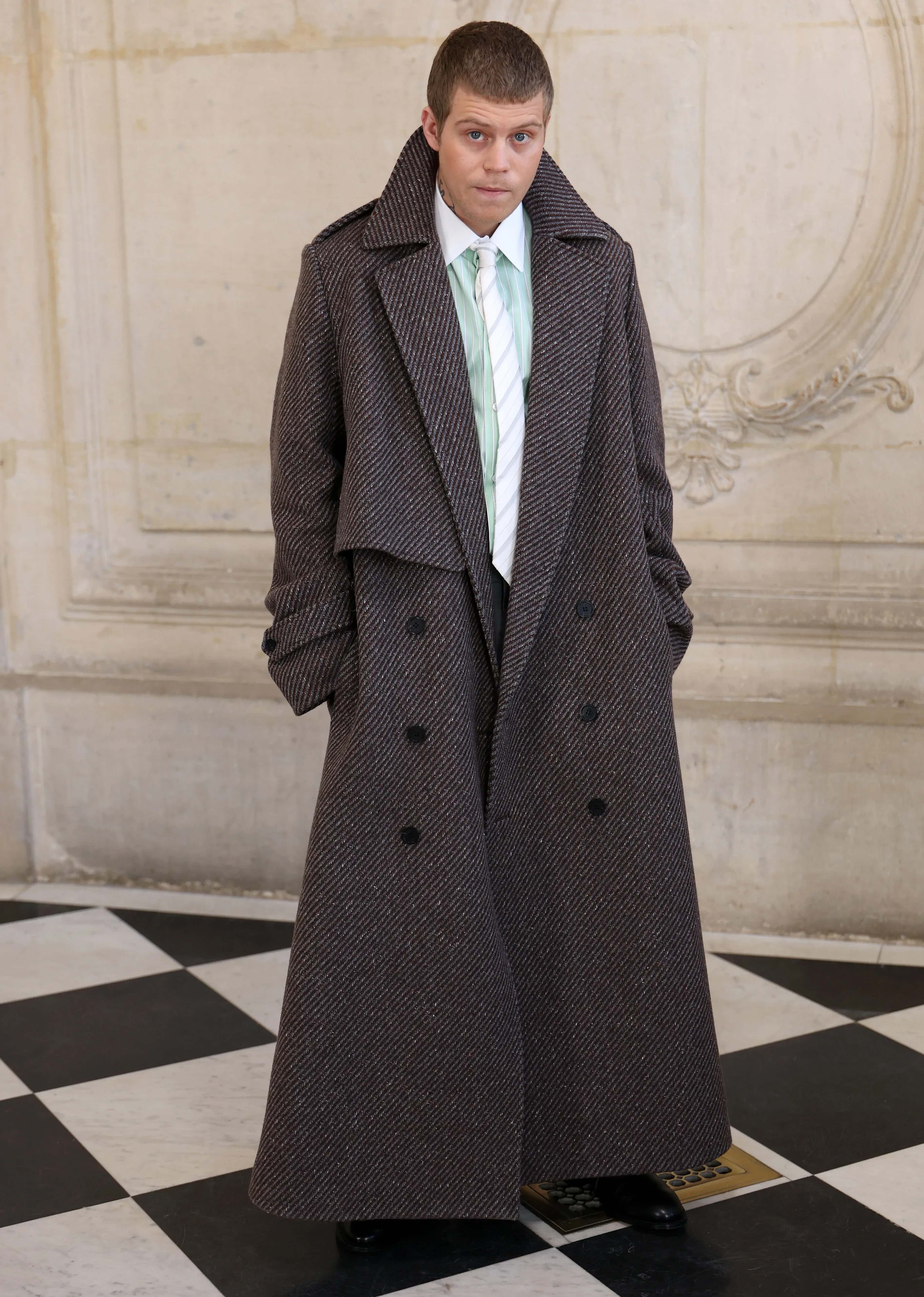 Дельфина и Антуан АрноРоберт ПаттинсонРоберт ПаттинсонЛуи ГаррельЛуи ГаррельМозес МартинМозес МартинМиа ГотМиа ГотДжейми ДорнанЯнг ЛинМужская коллекция модного дома Dior под руководством креативного директора Джонатана Андерсона вызвала смешанные эмоции в соцсетях и у модных критиков. Одни нарекли её смелой, дерзкой и даже революционной, чего так не хватает модному миру, а другие посчитали образы слишком женственными и назвали коллекцию недоразумением, от чего "консерваторам не по себе". Сам дизайнер при создании коллекции вдохновлялся работами Поля Пуаре, эстетикой deadbeat и фильмом "Уитнэйл и я".
