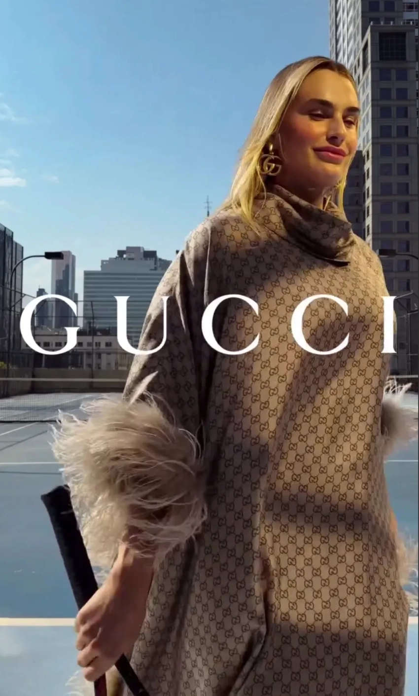 27-летняя теннисистка снялась в балахоне Primadonna из дебютной коллекции Демны Гвасалии для Gucci, который он посвятил Алле Пугачёвой. В видео Соболенко играет в теннис на корте в балахоне с перьями и в туфлях на каблуках. Также бренд опубликовал фото спортсменки в красном пальто и чёрных кожаных перчатках. "Добро пожаловать в семью Gucci, Арина", — написала команда модного дома.