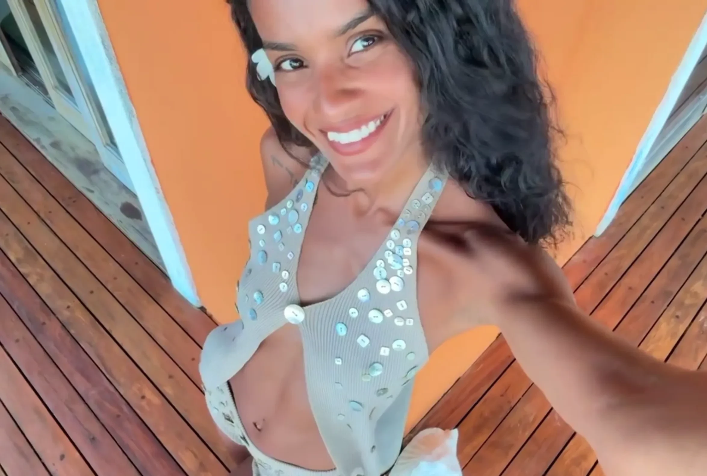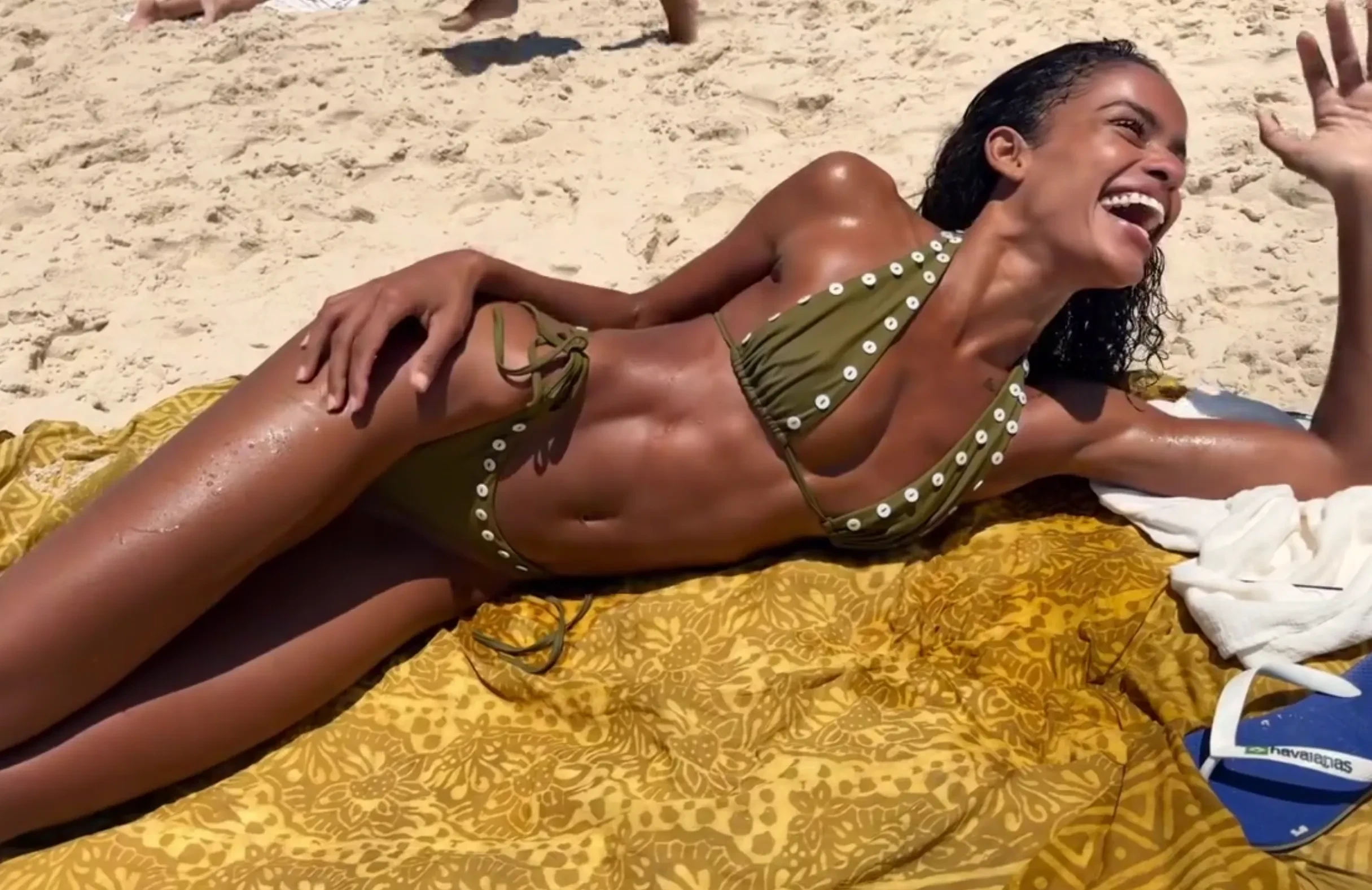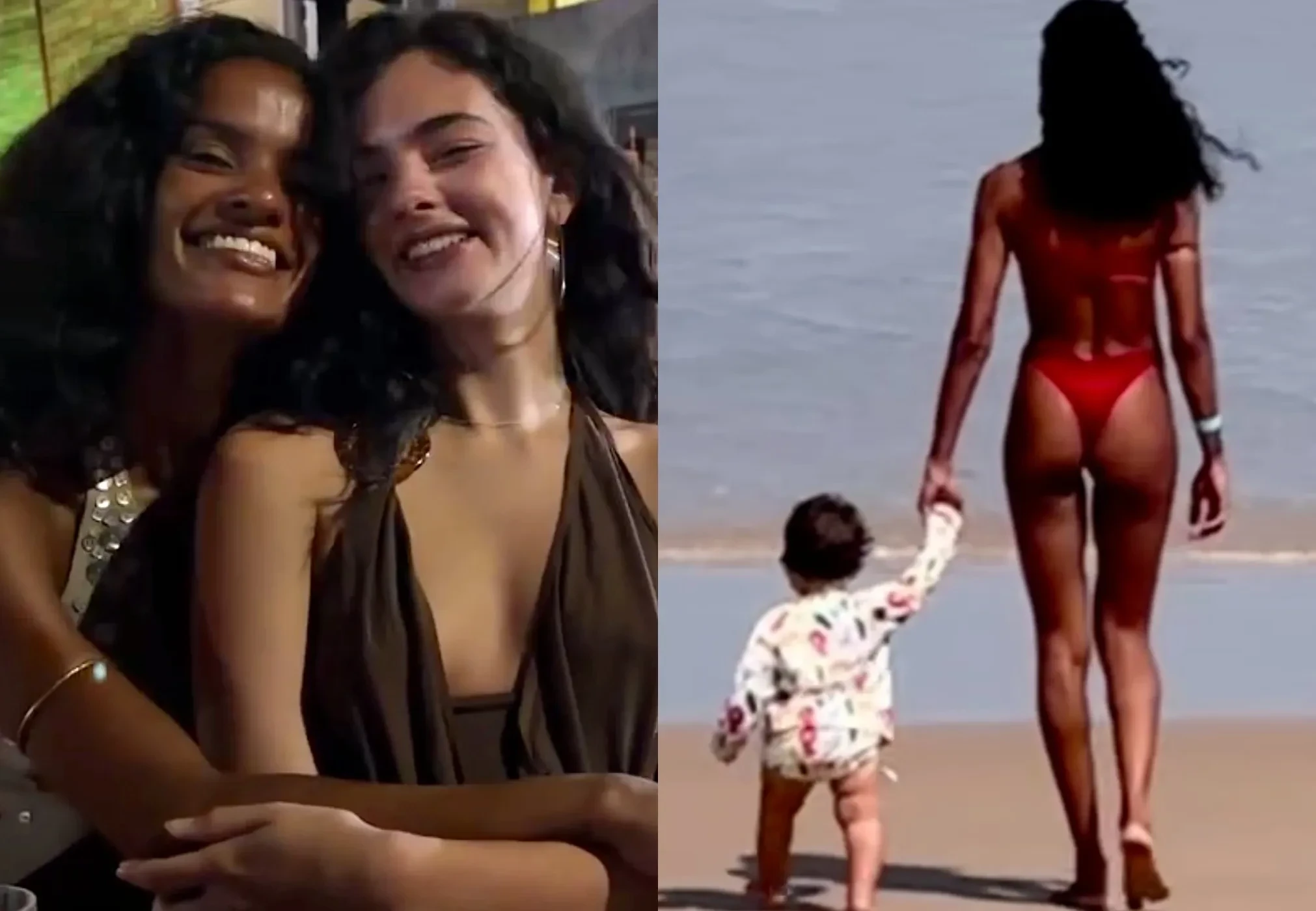 На снимках и видео, предположительно сделанных в Бразилии, Баптиста целуется с Касселем, обнимает 21-летнюю Деву Кассель в уличном кафе, позирует в бикини на пляже и гуляет по берегу с сыном.