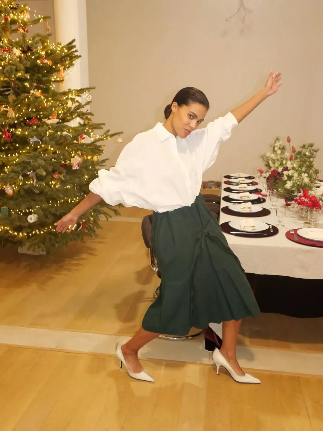 28-летняя Тина Кунаки показала кадры с семейного ужина, а Анна Винтур в честь праздника сделала фото со своими собаками. Ким Кардашьян устроила праздничную фотосессию в пижамах со своими детьми и племянниками, а Анна Нетребко провела вечер в "сказочной" атмосфере у ёлки. 28-летняя Кайли Дженнер нарядилась на ужин в платье John Galliano, а певица Натали Имбрулья показала нарядную ёлку.