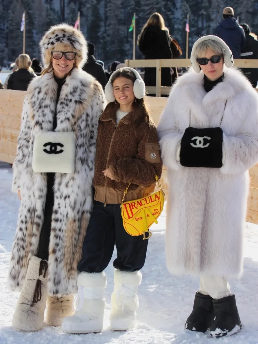 Бондаренко с детьми гуляли по курорту в ярких образах. Бизнесвумен надела длинную пятнистую шубу и меховую шапку в тон, дополнив образ муфтой Chanel и унтами. Её старшая дочь Алина выбрала похожий образ — белую шубу, муфту Chanel чёрного цвета и меховые наушники того же бренда, а младшая наследница Мия позировала в куртке Moncler и с "книжной" сумкой Dior, которые недавно обсуждали в сети.