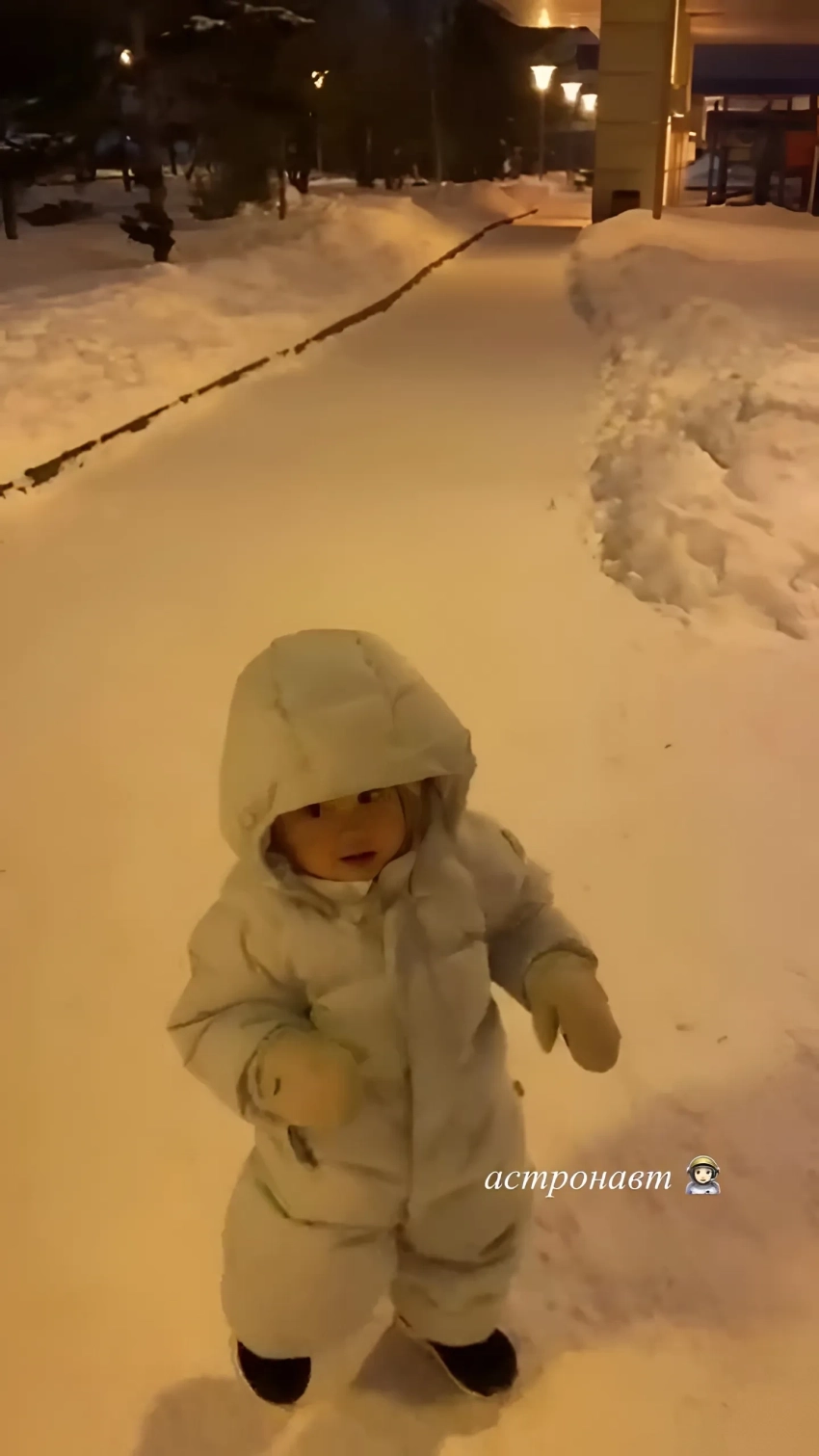 "Астронавт", — подписала Казанова видео с годовалой дочерью, в котором та идёт в зимнем комбинезоне по заснеженному тротуару. При этом, в отличие от предыдущих видео, в новом ролике можно рассмотреть лицо девочки.