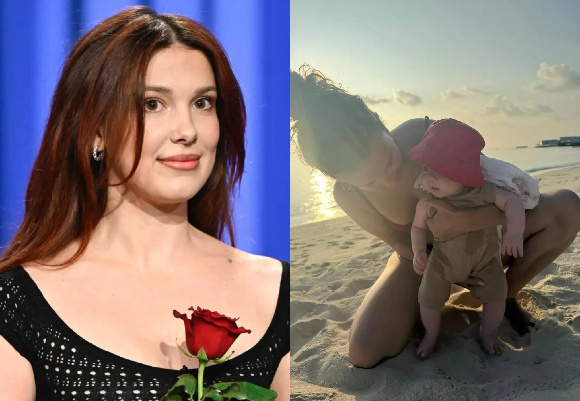 На одном из снимков 21-летняя актриса запечатлена на пляже с дочерью. Девочка, чьё лицо Милли ранее скрывала на фотографиях, одета в бежевое боди и розовую панамку. В подборке также есть кадр, на котором Бобби Браун и 23-летний Бон Джови обнимаются, вероятно, находясь на катере, а также отдельное фото актрисы в жёлтом бикини.