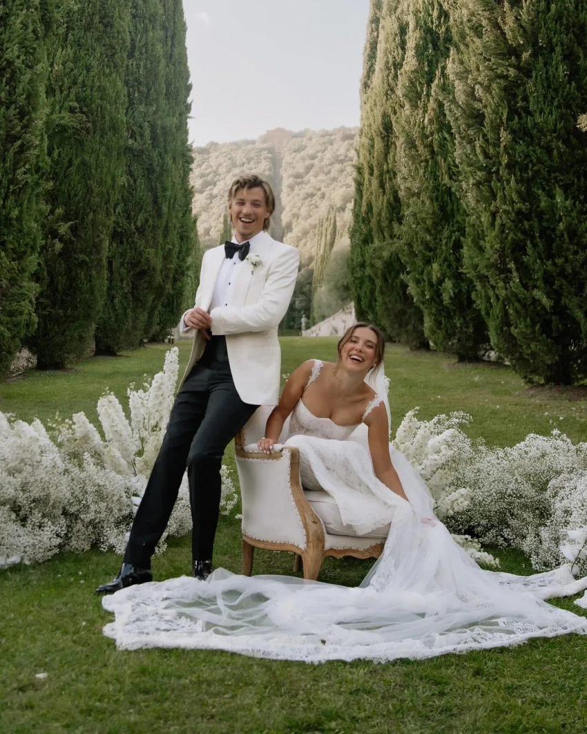 Милли Бобби Браун и Джейк Бон Джови с дочерьюМилли Бобби Браун стала известной в 2016 году после выхода сериала "Очень странные дела", где она сыграла девочку с сверхспособностями по имени Одиннадцать. С тех пор она часто сталкивается с критикой за то, что якобы выглядит "старше своих лет". В 2024 году актриса вышла замуж за сына популярного музыканта Джона Бон Джови, Джейка, с которым встречалась с 2021 года. У пары было две свадьбы: сначала они провели скромную церемонию в кругу близких, а позже устроили пышное торжество в Италии.