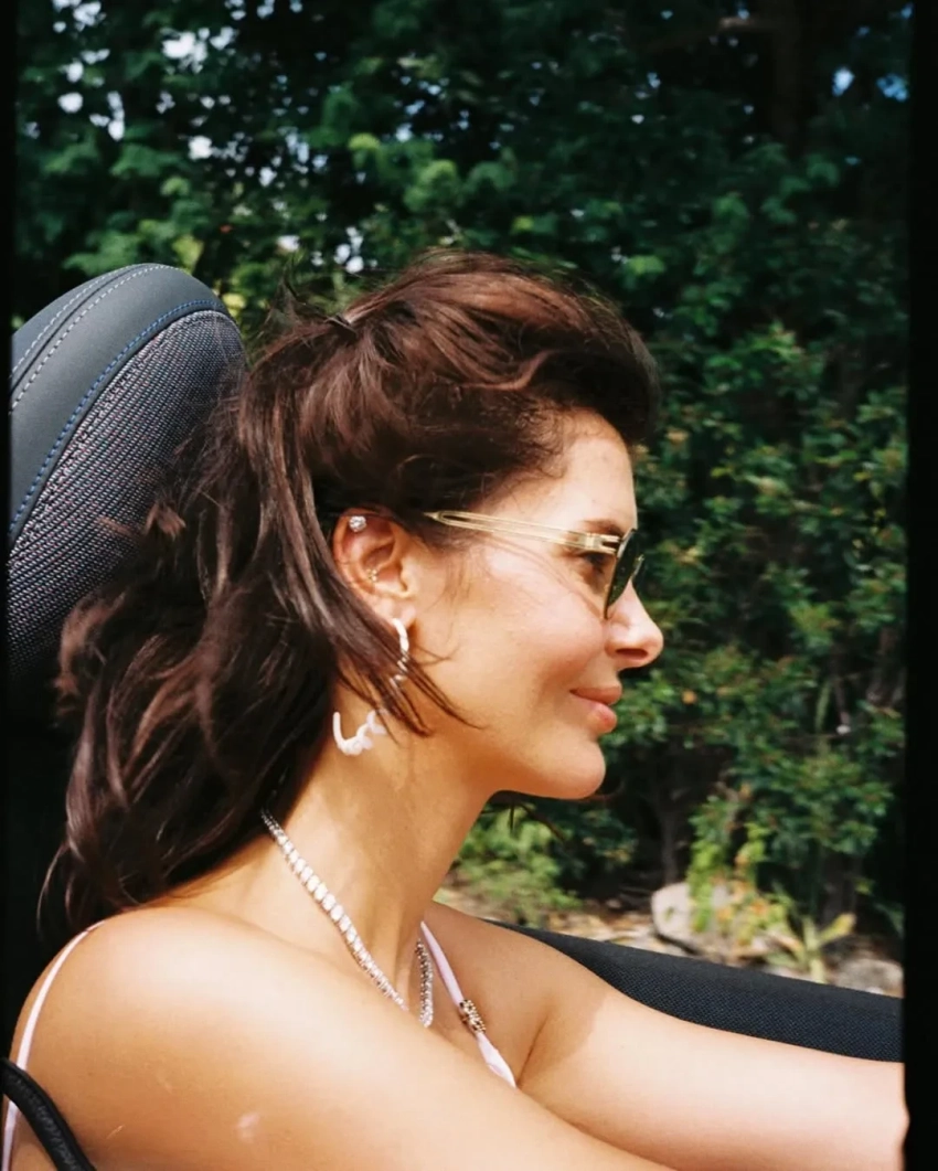 На фото Оболенцева позирует в купальнике Chanel и прозрачной юбке на острове Сен-Барт, где пара год назад сыграла свадьбу. "Любовь — это пятое время года. А.А.А.", — подписала фото Надежда.
