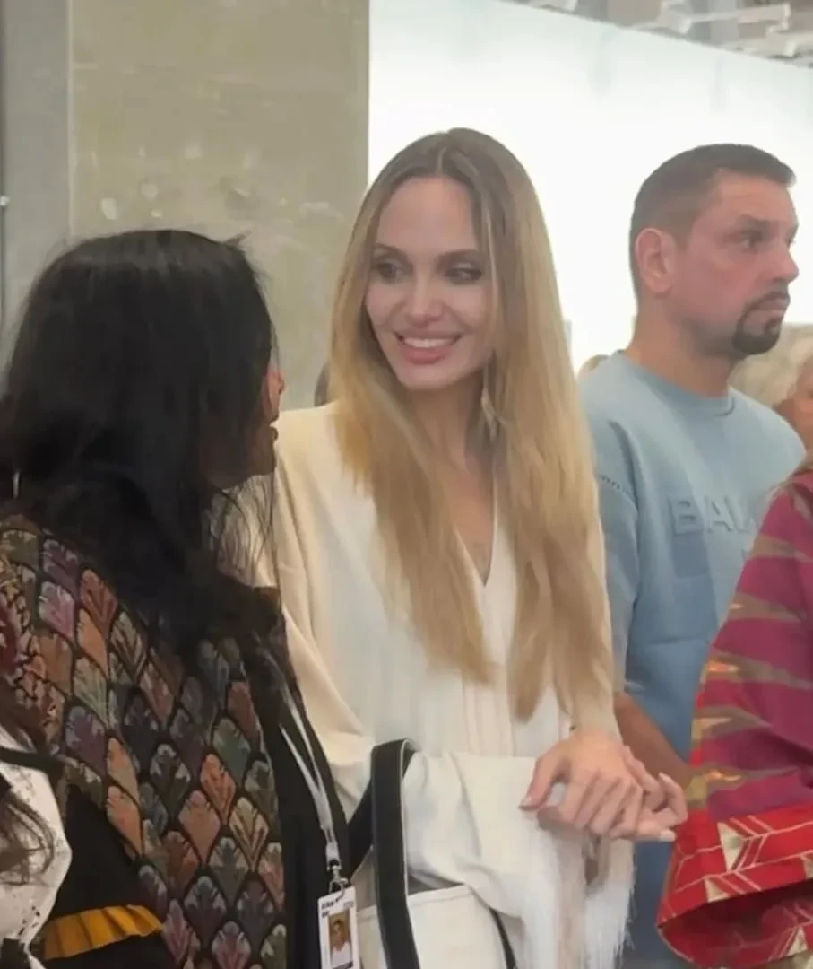 50-летняя Анджелина Джоли в длинном платье с перьями позировала рядом с художницами Анжелой Феррейрой, Айзой Ахмед и пакистанским режиссёром Шармин Обейд-Чиной, а также попала в сторис* Андрея Малахова. Наоми Кэмпбелл пришла на ярмарку в тотал-луке Gucci, в котором выходила в свет Гвинет Пэлтроу, и пообщалась с российским ведущим.