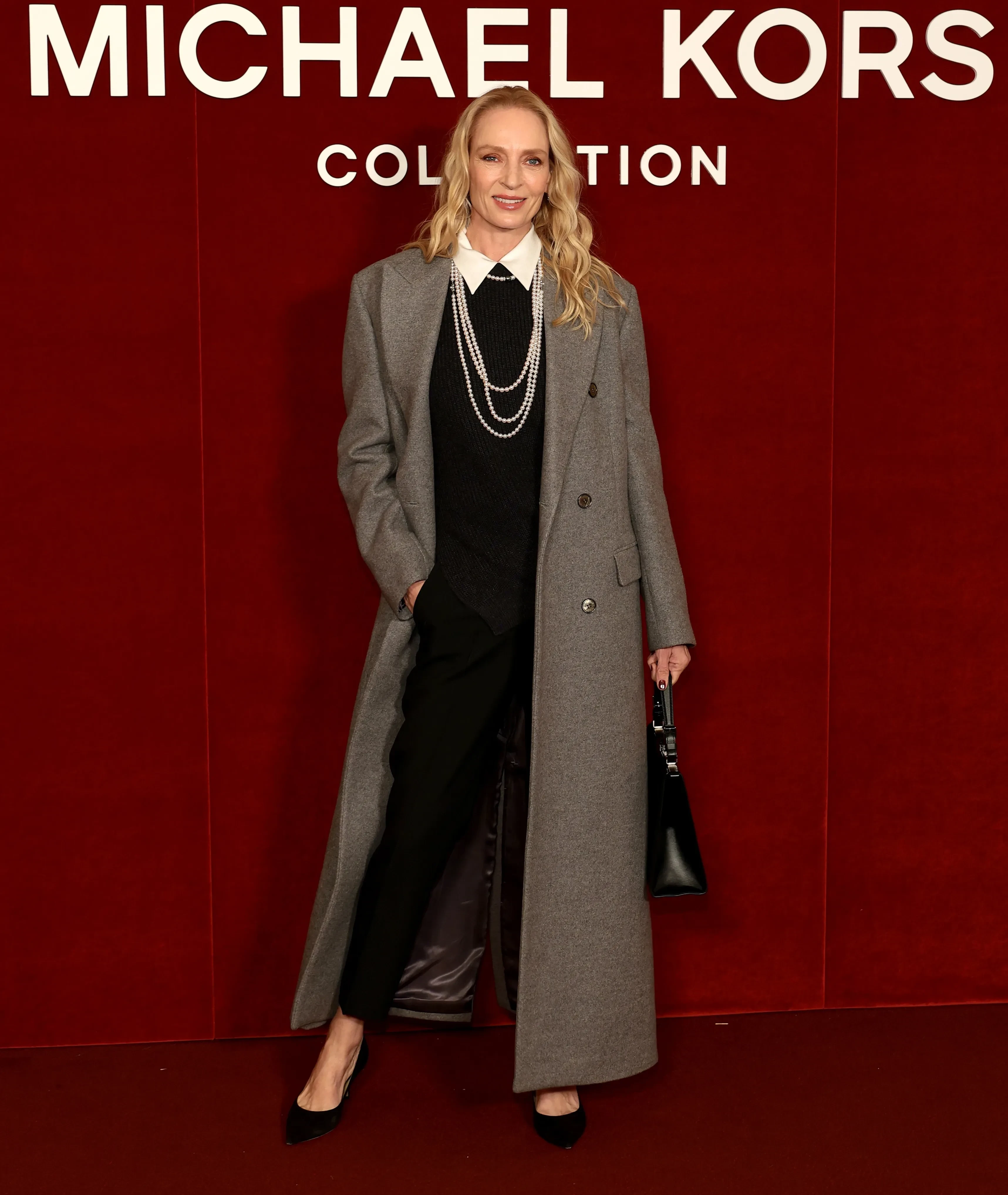 55-летняя Ума Турман пришла в чёрных брюках и сером пальто, дополнив строгий образ жемчужными бусами. 26-летняя дочь актёров Риз Уизерспун и Райана Филиппа Ава надела классическое чёрное платье, а 47-летняя экс-солистка группы The Pussycat Dolls Николь Шерзингер блистала в коричневом платье и белом пальто.