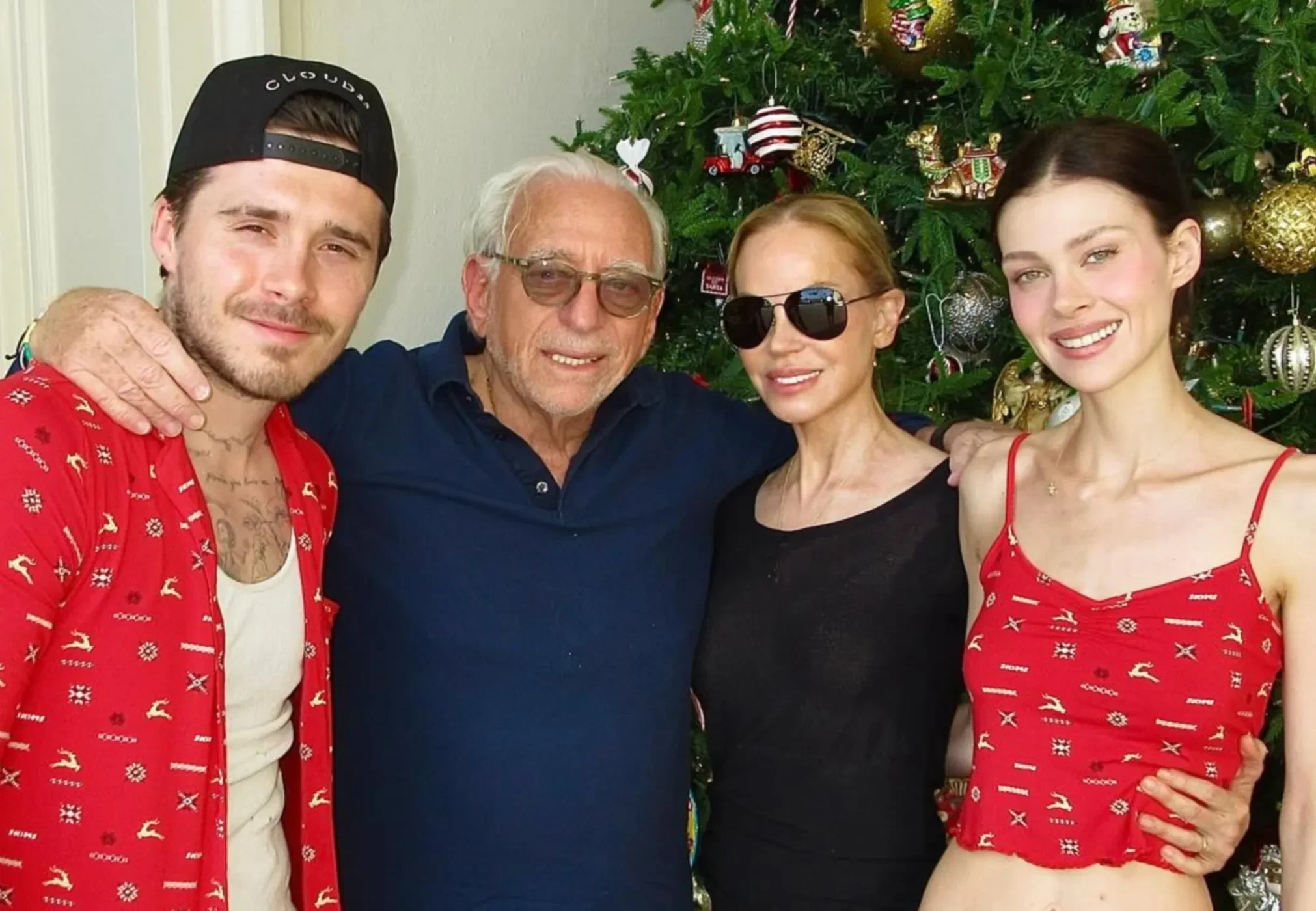 На фото Бруклин и Никола позируют в одинаковых рождественских пижамах на фоне украшенной ёлки. На одном из снимков к ним присоединились родители Николы — миллиардер Нельсон Пельтц и экс-модель Клаудиа Пельтц. "Желаем всем счастливого Рождества и Нового года, наполненных любовью, миром и счастьем", — подписала пара публикацию.