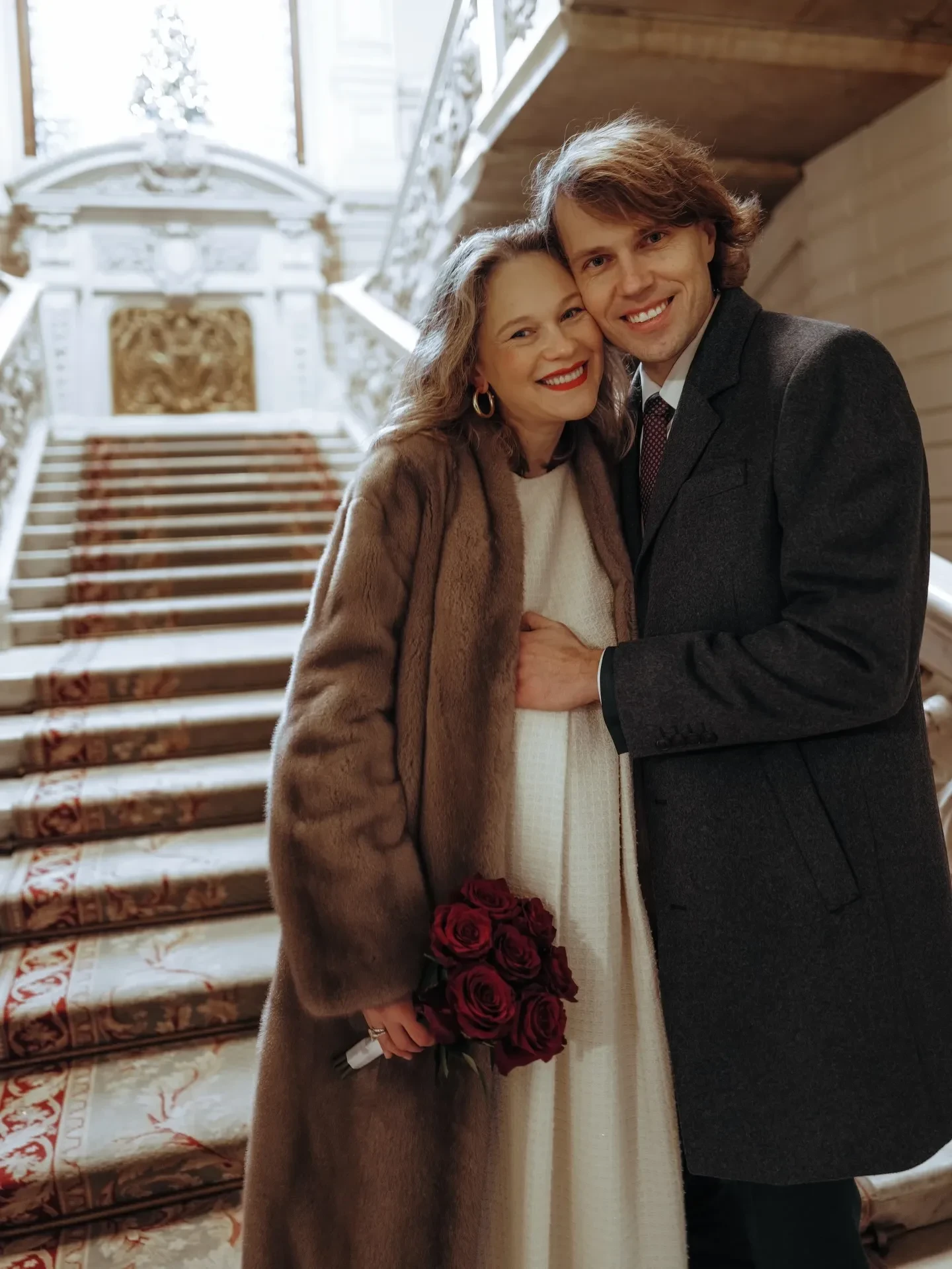 Пара расписалась в Дворце бракосочетания № 1 в Санкт-Петербурге. Невеста была в белом платье с вафельной текстурой, чёрных ботильонах и шубе, а жених — в сером костюме с удлинённым пиджаком. "В этом году я успела всё!" — подписала публикацию Янковская.