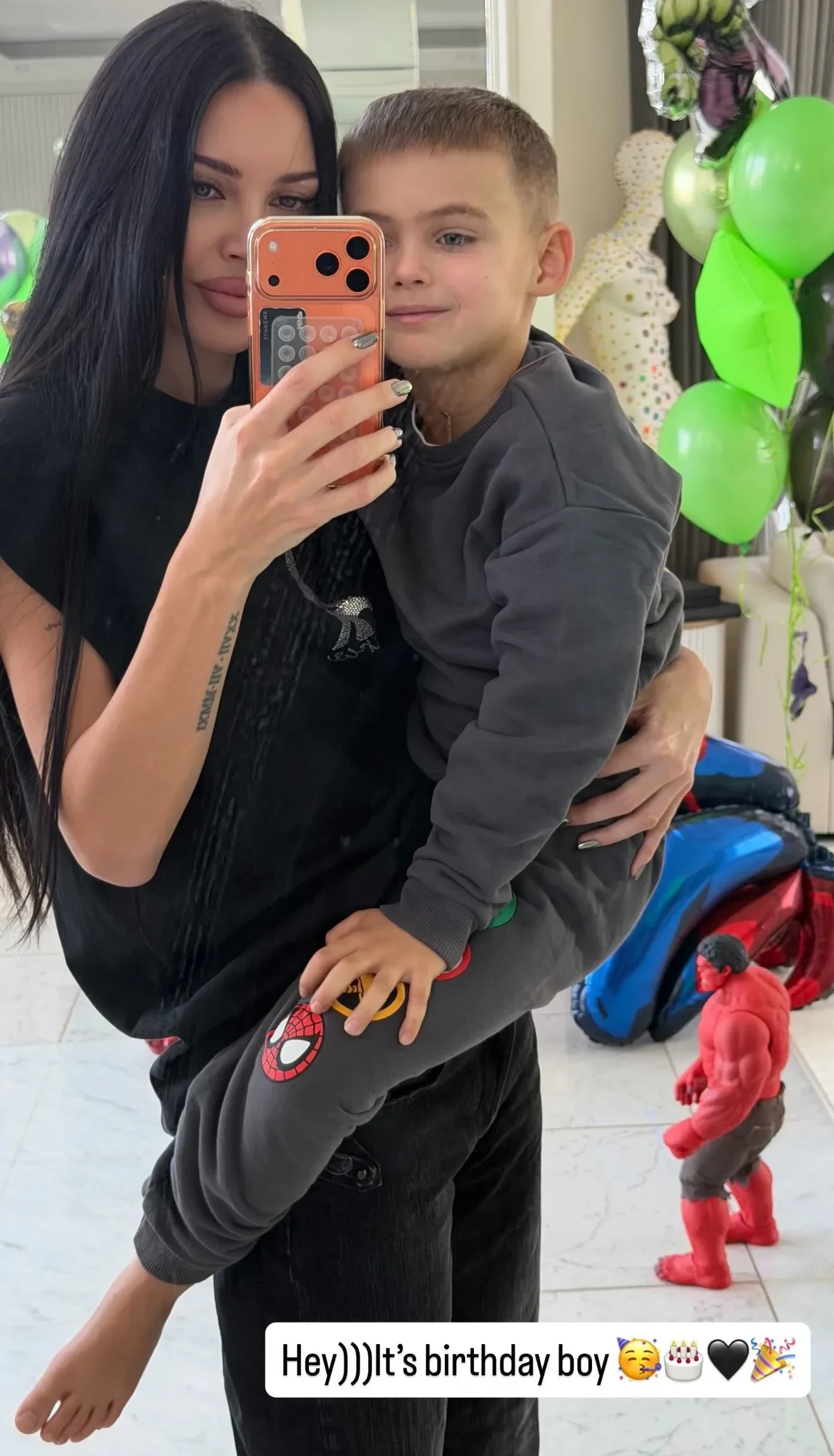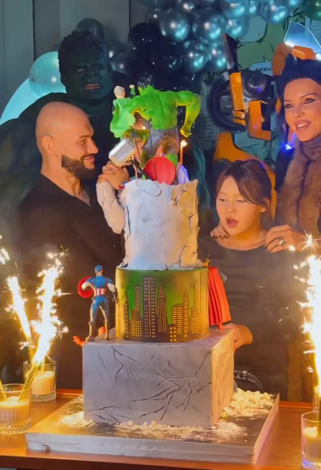 Звёздные родители устроили сыну вечеринку в стиле комиксов Marvel и DC с известными персонажами: Человеком-пауком, Бэтменом, командой "Мстителей" и другими. На празднике 37-летняя Самойлова и Джиган не контактировали друг с другом, а проводили время с детьми.