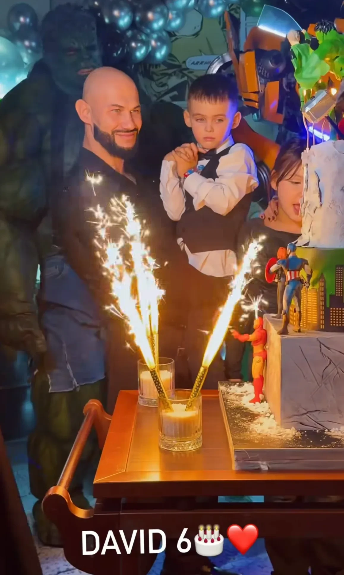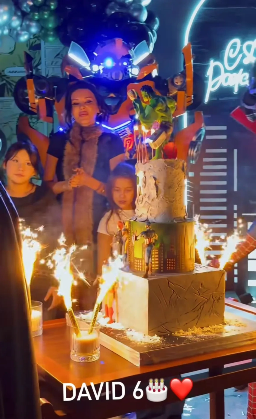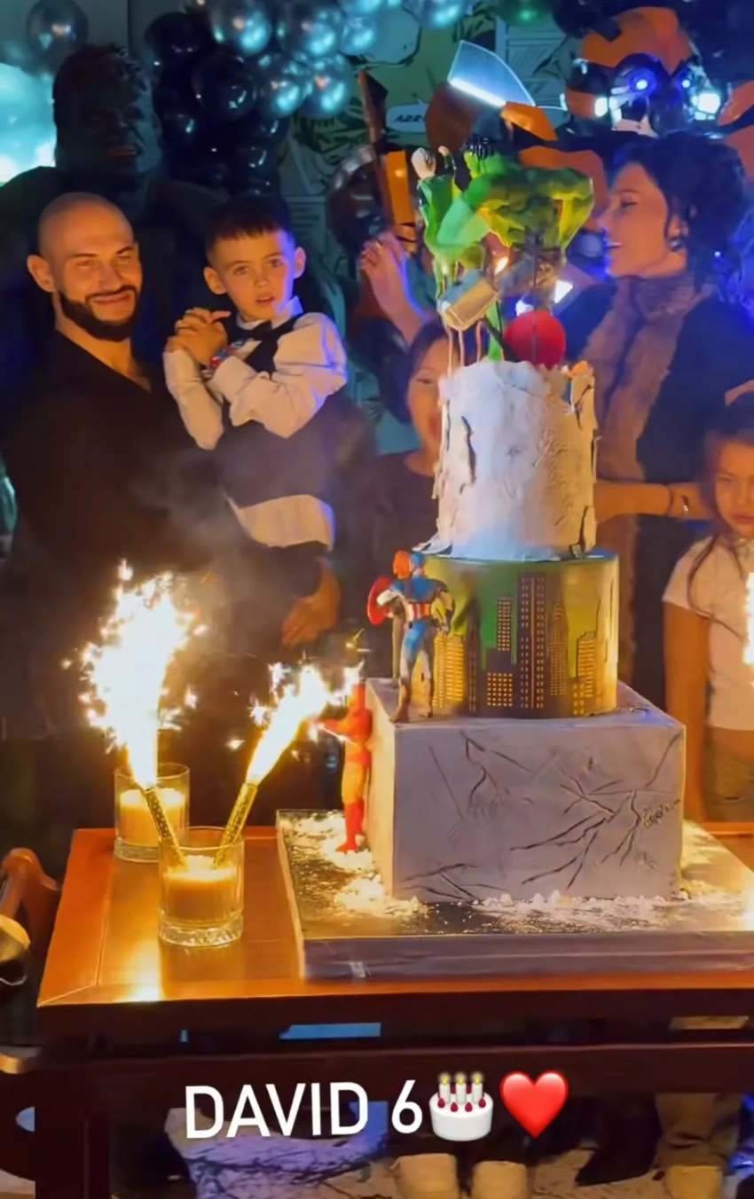 Поздравить Давида с шестилетием пришли его сёстры, а также друзья. Во время зажжения свечей на торте экс-супруги, которые делят имущество в суде, вместе попали в кадр, но не позировали рядом.