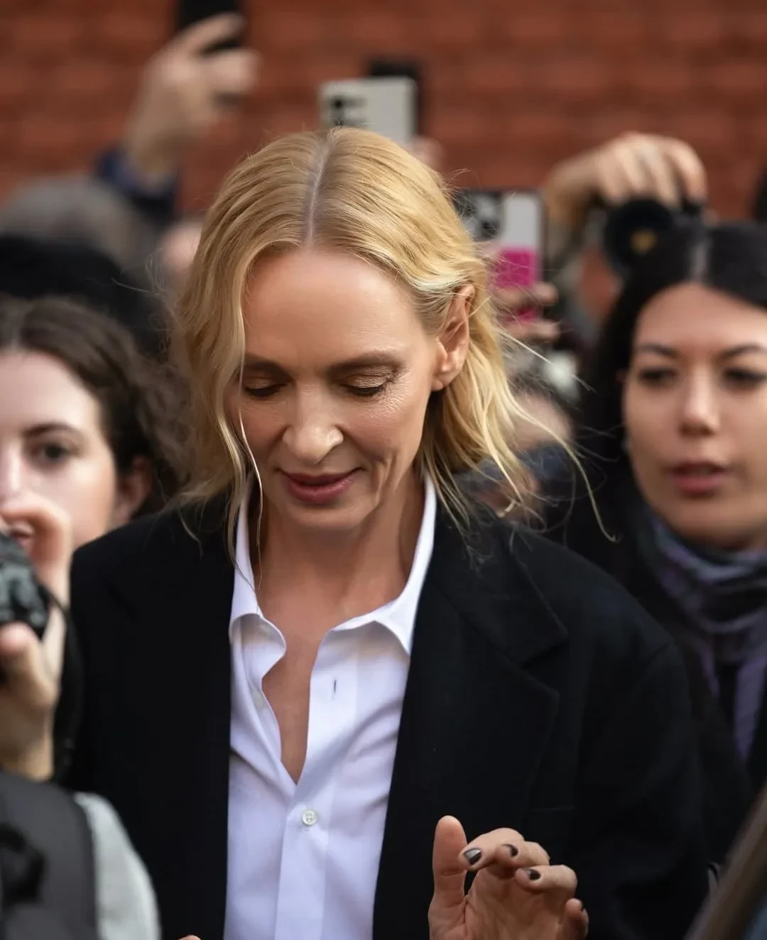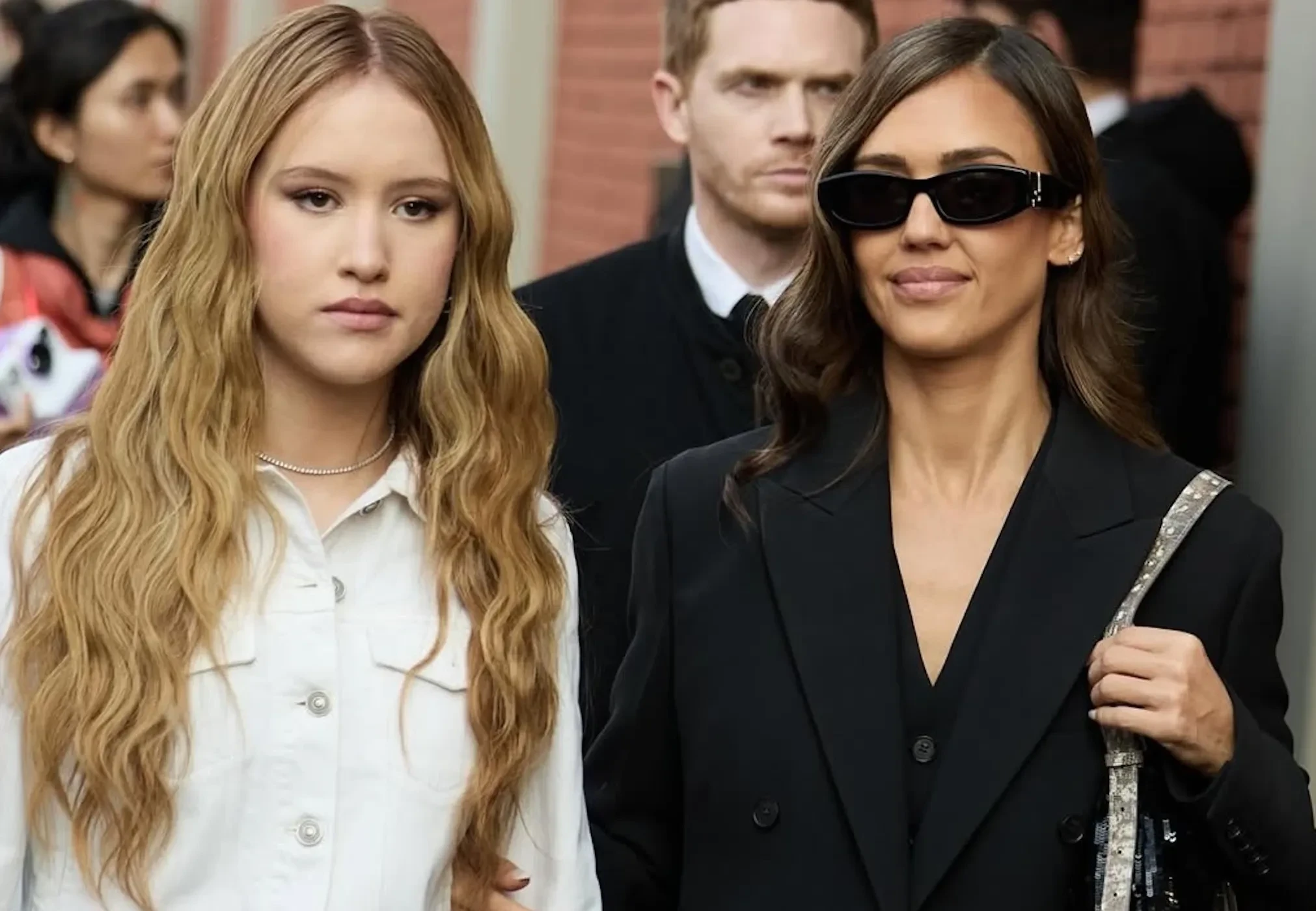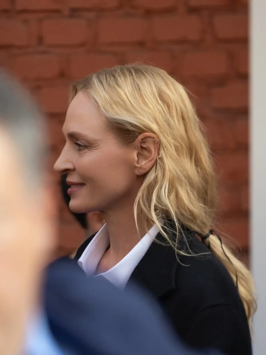 61-летняя Моника Беллуччи пришла на показ в чёрном брючном костюме с белой рубашкой и солнцезащитных очках. Похожие образы надели 44-летняя Джессика Альба, которая позировала фотографам вместе с 14-летней дочерью Хэвен, и Ума Турман. Елена Перминова пришла в платье и чёрных туфлях с носками в тон.