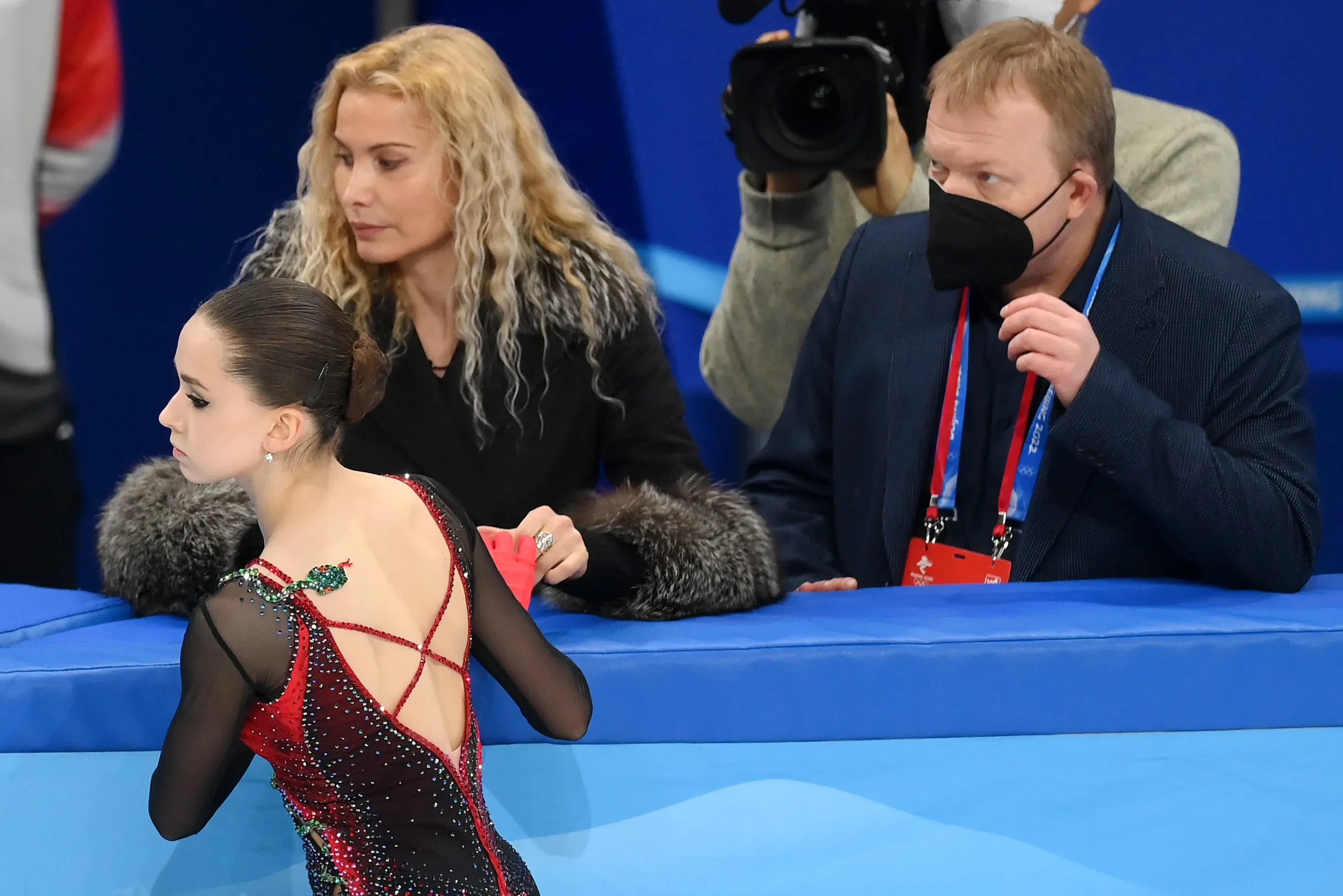 [Тренер Светлана Соколовская о работе с Валиевой:] Моя задача, чтобы Камила, возвращаясь в спорт, на данном этапе каталась в понимании, в поддержке и в любви и просто делала дело, потому что она это сама хочет и любит. И мне бы хотелось, чтобы она ни от кого не пряталась, ни от кого не защищалась. Просто была свободной и жила в своём любимом деле. Если она это дело продолжит делать хорошо и с той любовью, которую мы будем стараться ей вернуть, то тогда время поставит всё на свои места. Сейчас очень много ажиотажа ненужного. Я понимаю, что у каждого своя профессия, но это сейчас не надо ни ей, ни тем более мне.Камила Валиева, Этери Тутберидзе и Сергей Дудаков на Олимпиаде в Пекине