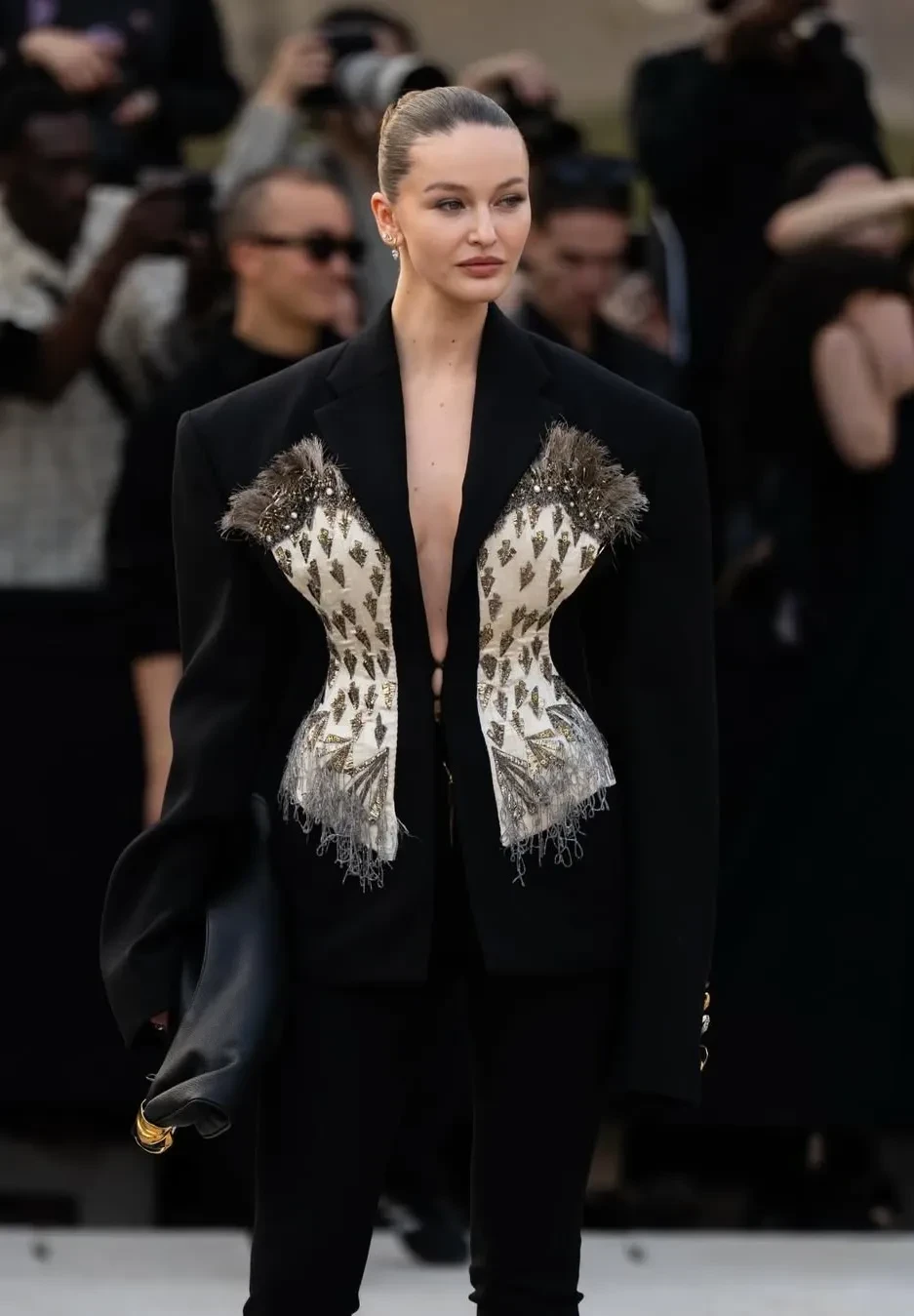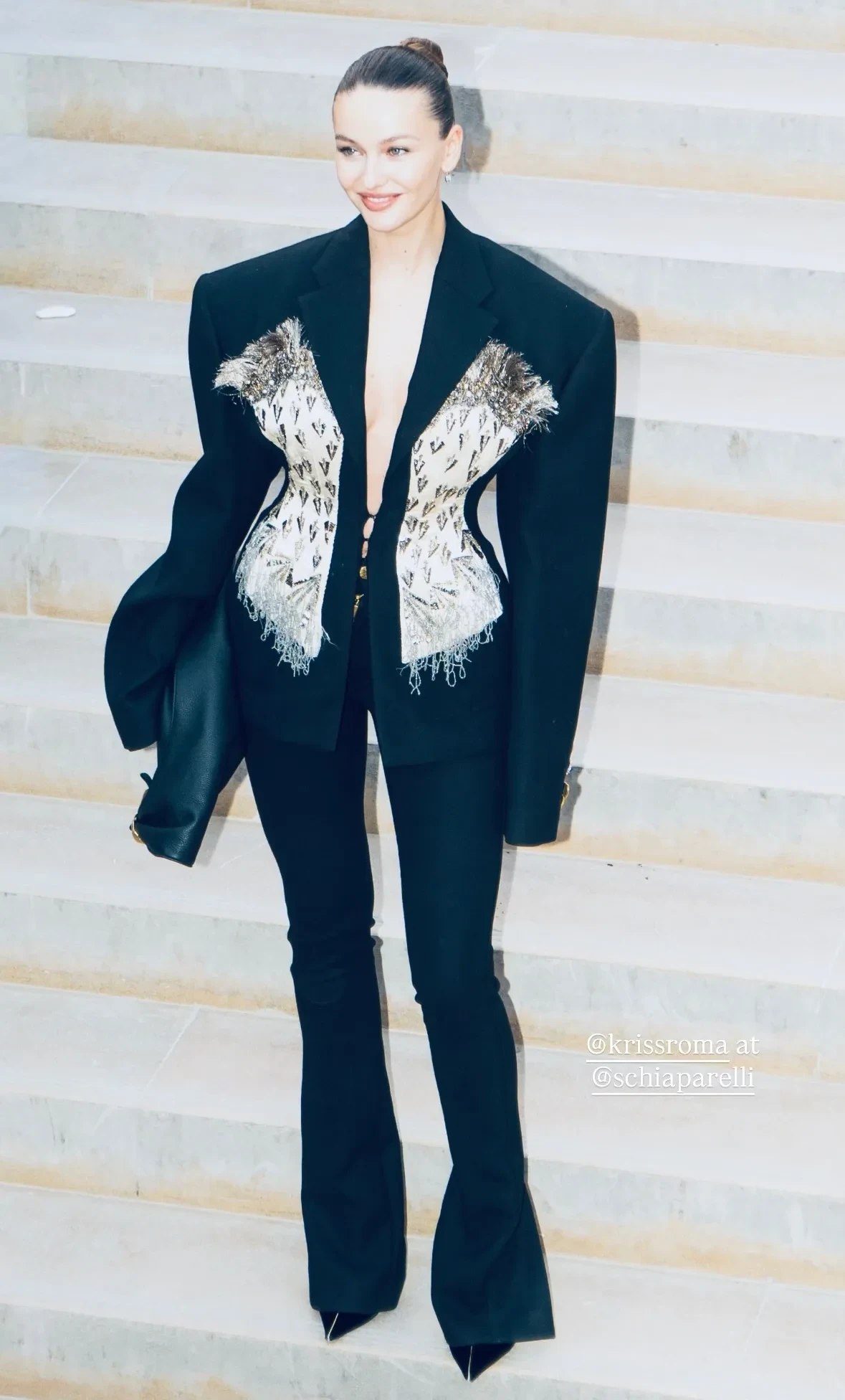 В Париже в рамках Недели моды прошёл показ новой коллекции модного дома Schiaparelli. Шоу посетили возлюбленные российских бизнесменов и другие селебрити. Среди них: девушка миллиардера Владислава Доронина Кристина Романова, экс-супруга главы "Банка Москвы" Андрея Бородина Татьяна Корсакова, гражданская жена главы Газпромбанка Андрея Акимова Даша Попова, светские львицы Оксана Бондаренко и Дарья Лисиченко, фэшн-фотограф и девушка Марка Эйдельштейна Надя Ли Коэн, стилист Вита Клац, модные инфлюенсеры Каролин Даур, Кьяра Ферраньи и Леони Ханне, а также другие гости.