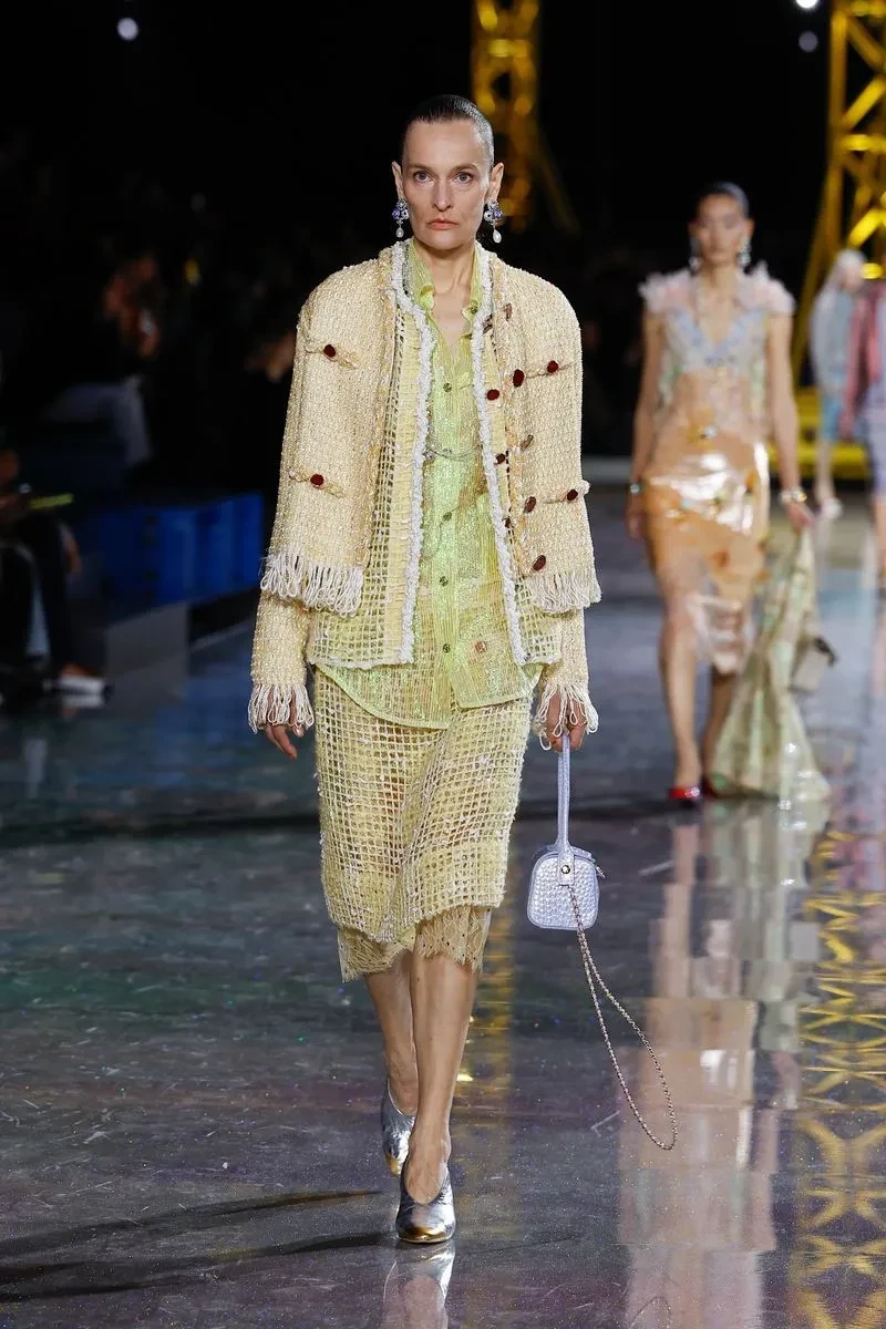 35-летняя Марго Робби пришла на шоу с новой стрижкой и в полупрозрачном топе с джинсами, а редкая гостья модных показов, 57-летняя певица Кайли Миноуг позировала в топе и юбке с кружевом и вышивкой. Дочь Джонни Деппа и Ванессы Паради Лили-Роуз блистала в леопардовом платье и головном уборе в тон.