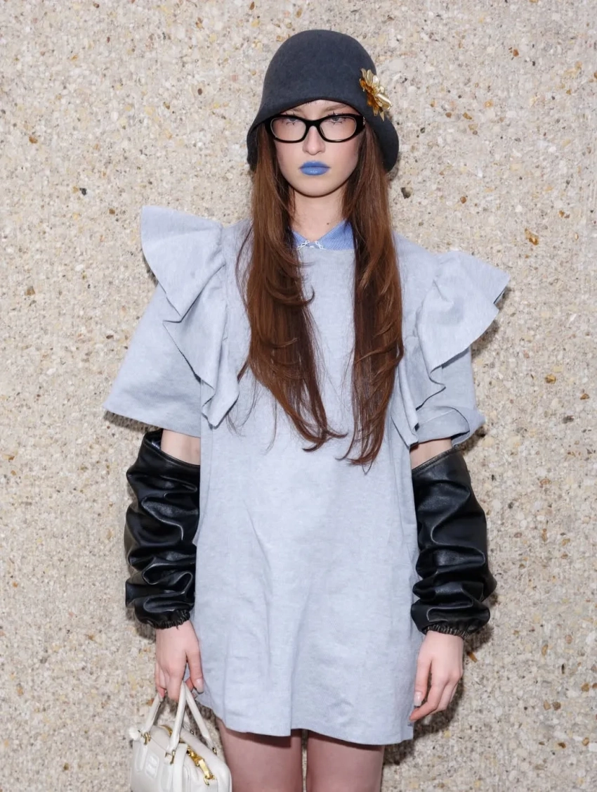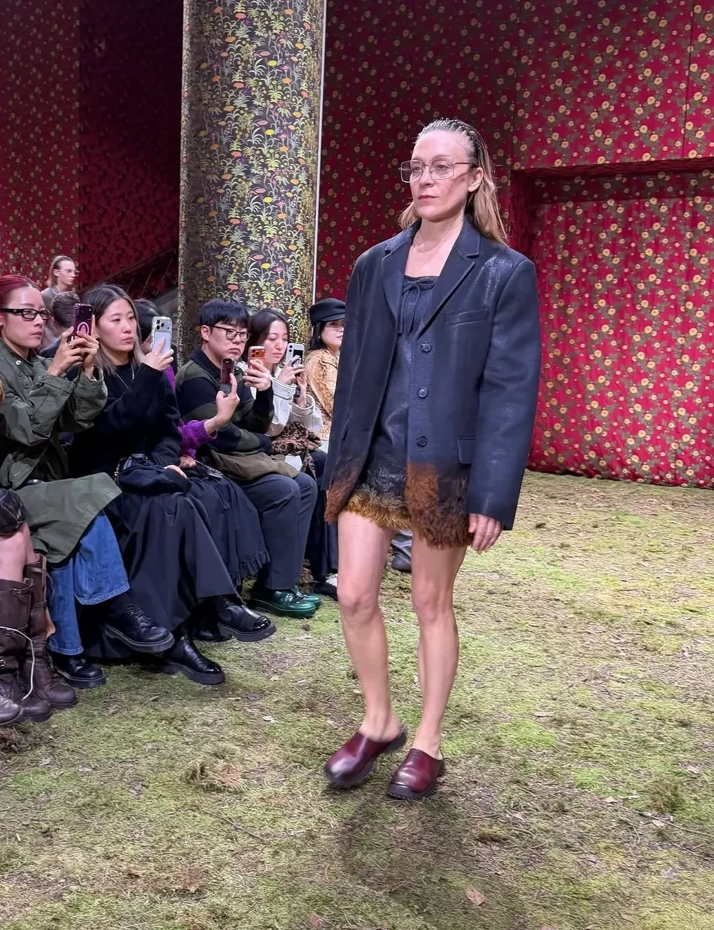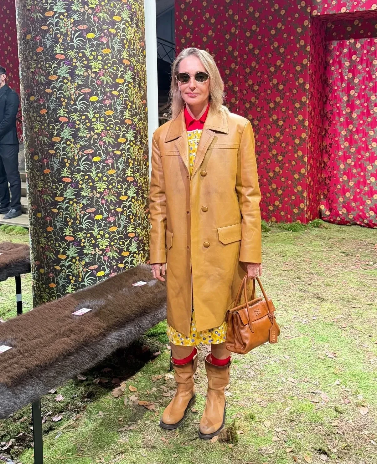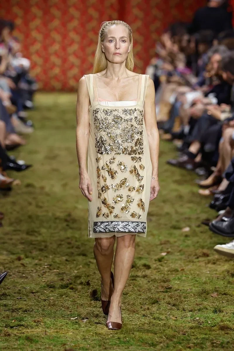 Неделя моды в Париже: Елена Перминова в "советском" платье, Оксана Самойлова (в чулках) среди гостей и Джиллиан Андерсон — на подиуме на показе Miu Miu