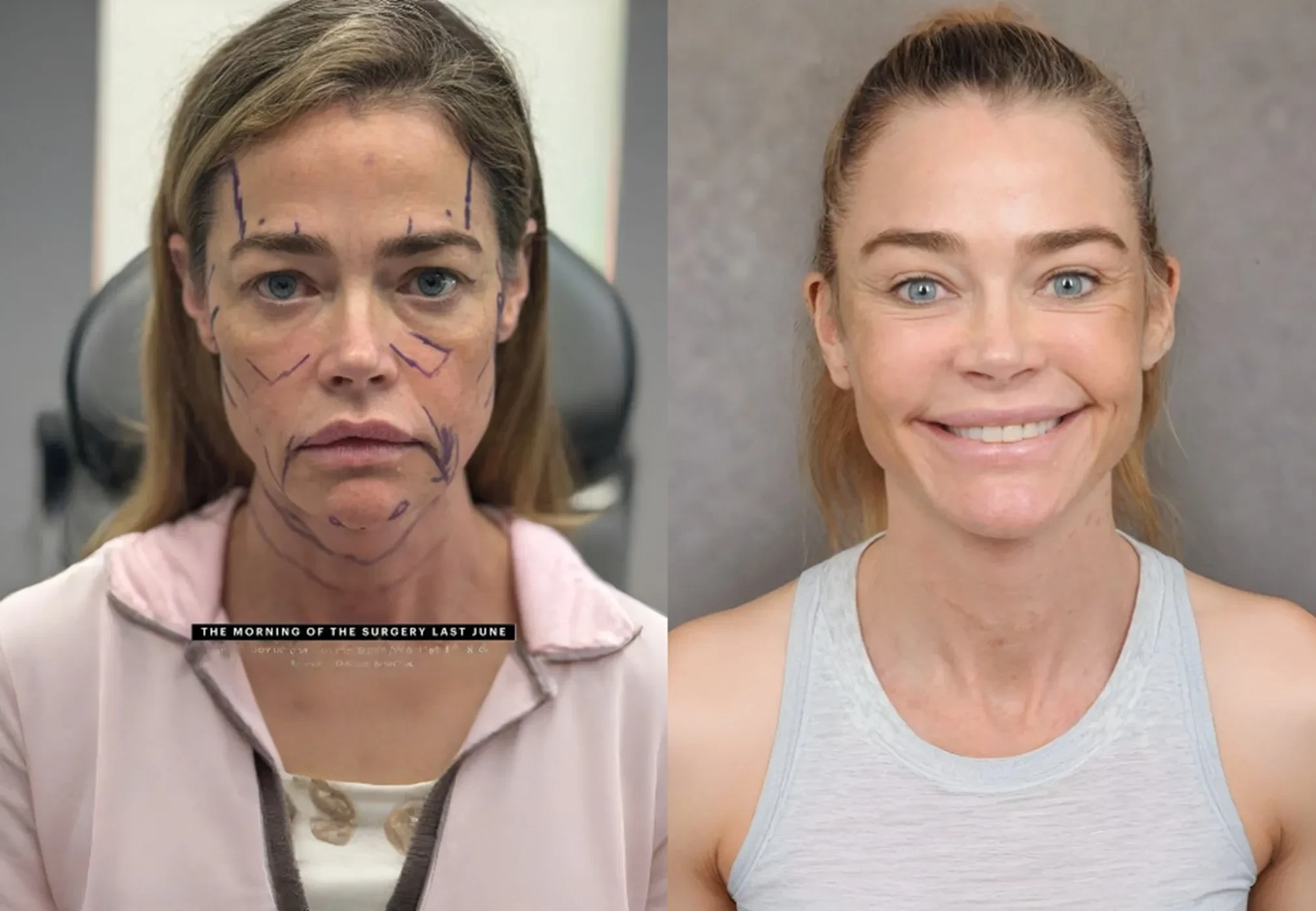 Дениз не ограничилась одной зоной, это было полное омоложение лица: глубокая подтяжка лица и шеи, височный лифтинг, блефаропластика и липофилинг. "Я нахожусь на виду у публики с 20 лет, и люди знают, как я выгляжу. Подтяжка лица — это то, что я не смогу скрыть", — объяснила Ричардс, почему решилась на откровения.