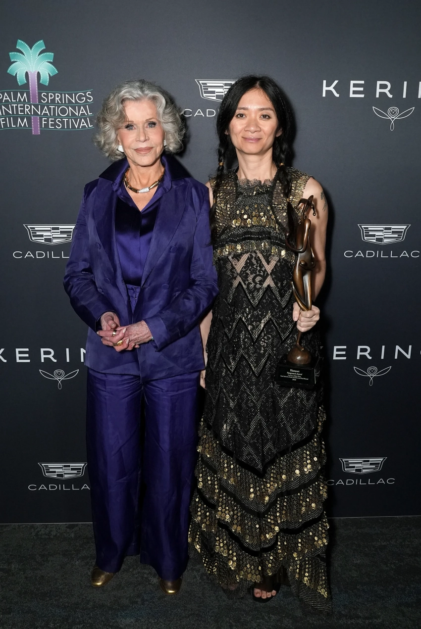 Тимоти ШаламеТиш и Майли СайрусТиш и Майли СайрусДжейн Фонда и Хлоя ЧжаоКейт ХадсонКейт ХадсонАманда СейфридАманда СейфридЭль ФаннингЭль ФаннингРоуз БирнРоуз БирнМия ГотМия ГотМеган ФэйхиМеган ФэйхиРенате РеинсвеЛора ДёрнПол МескалДжейкоб ЭлродиДжеки и Адам СэндлерФото: Palm Springs International Film Society