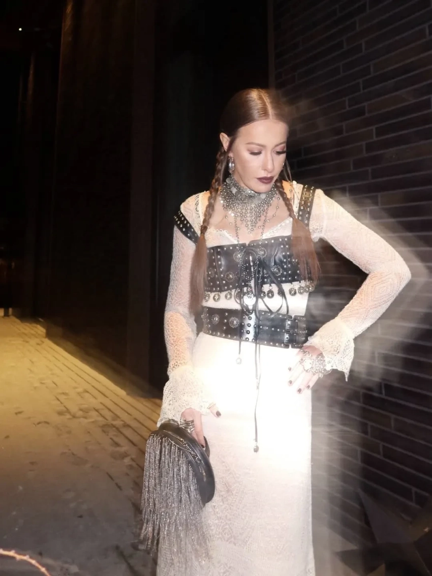 Косы, кожа и металл. Ксения Собчак примерила образ "готической снегурочки"