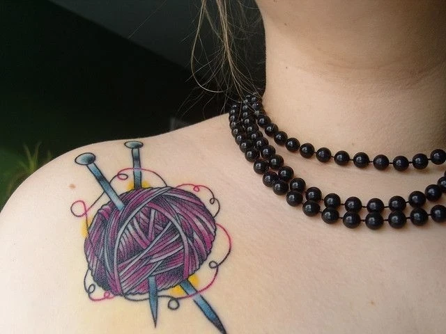 - Клубок ниток со спицами — хотя многие считают эту тату «хобби-татуировкой», в криминальном и эзотерическом контексте она может означать связь с тёмной магией или сектой, готовность идти на всё ради своих убеждений.