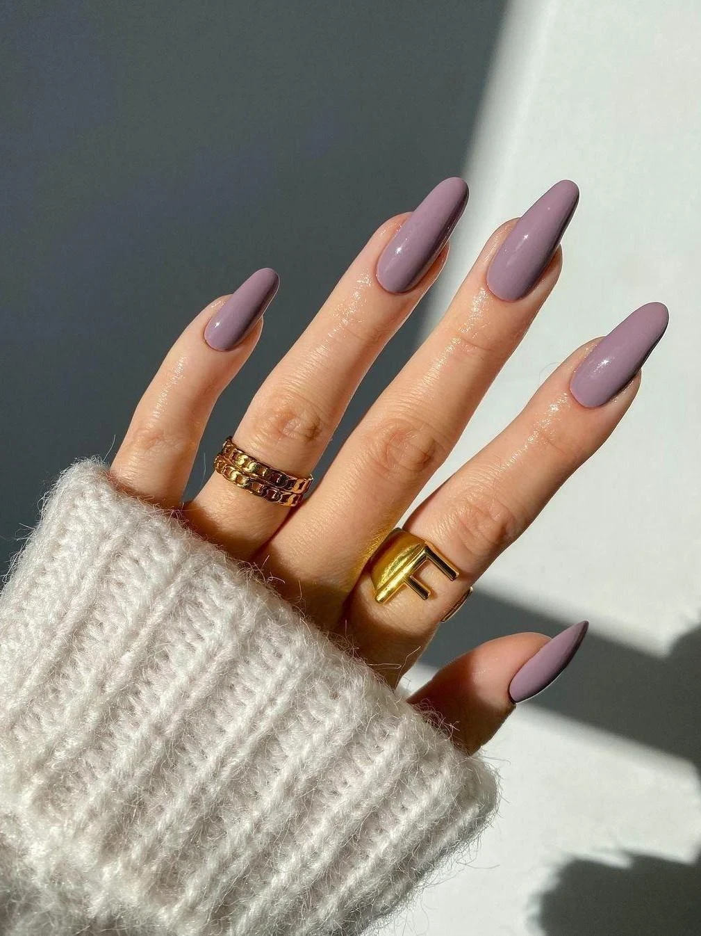 Пыльный сиреневый с серым подтоном выглядит современно и сдержанно. Такой маникюр на Новый год 2026 подойдёт тем, кто ищет баланс между нежностью и строгостью. Он одинаково уместен и в повседневных образах, и в праздничной обстановке.