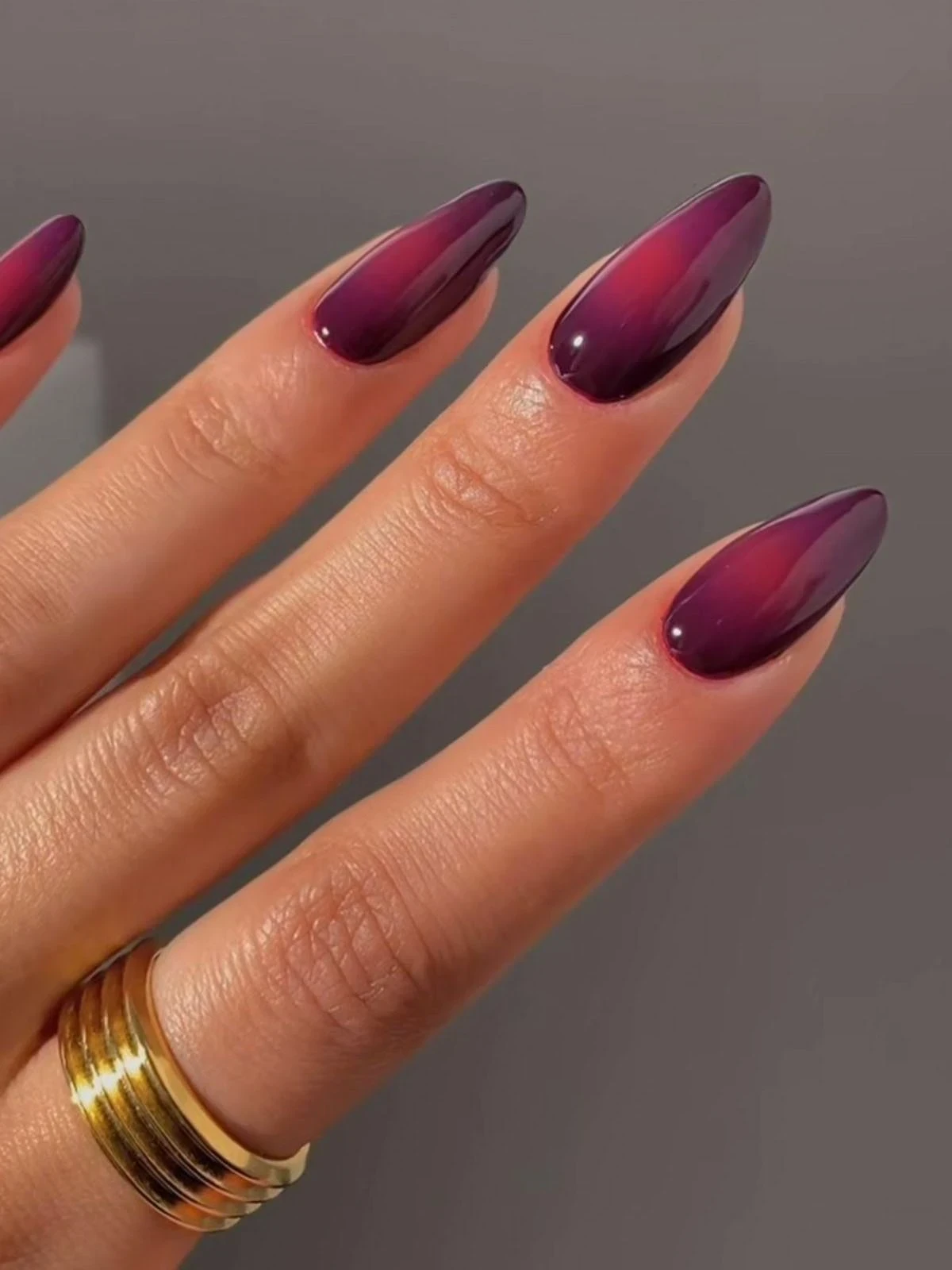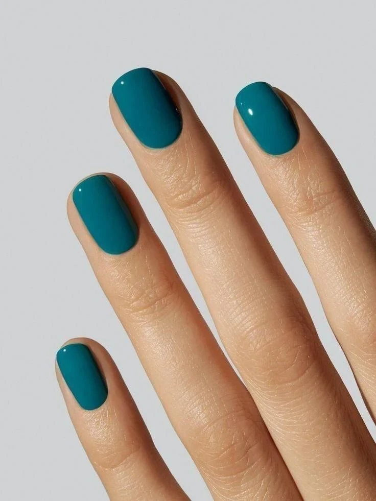 Один из самых сложных и эффектных оттенков 2026 года. Он меняется в зависимости от освещения — от изумрудного до глубокого фиолетового. Маникюр в этом цвете не нуждается в дополнительном дизайне: он сам становится главным акцентом образа.