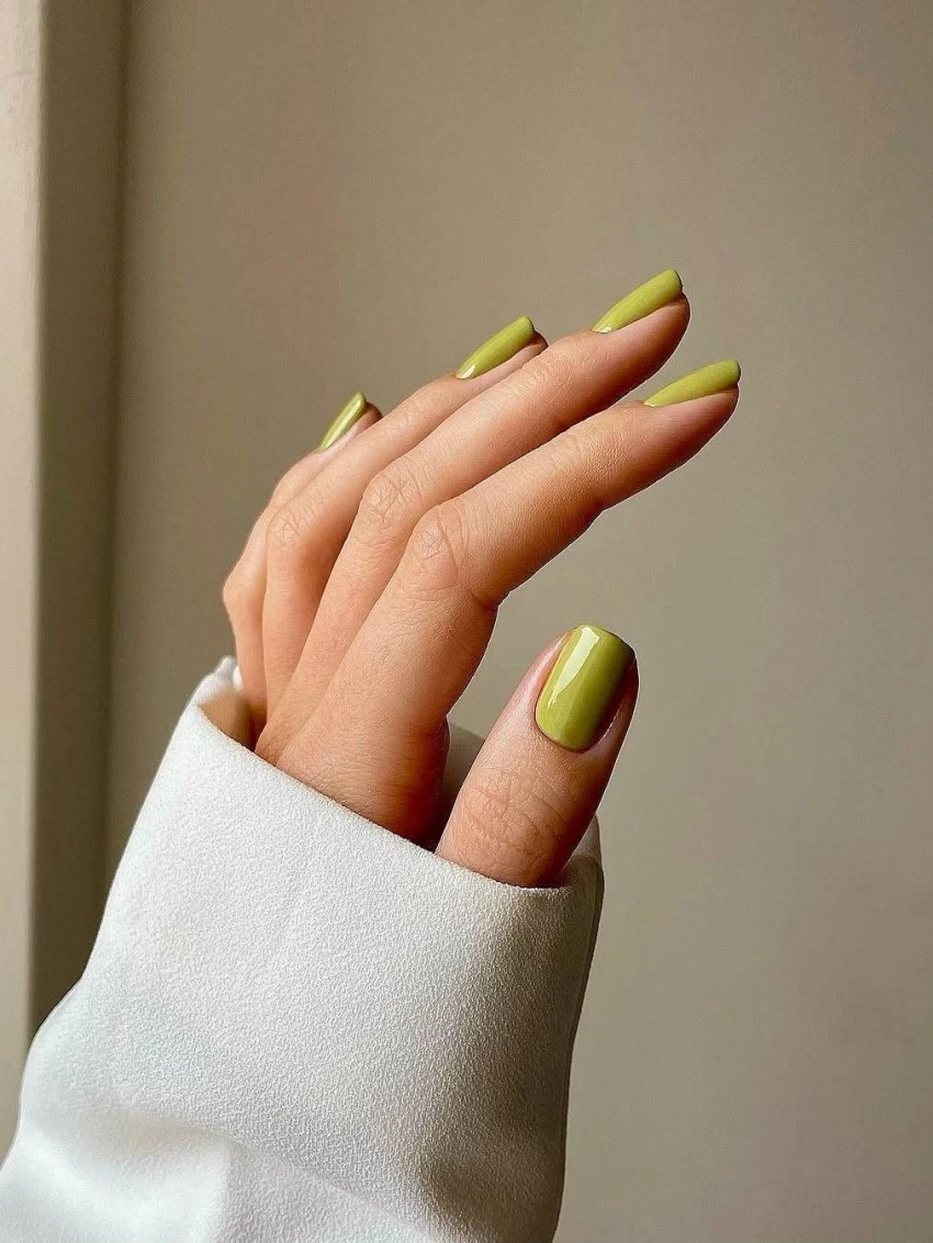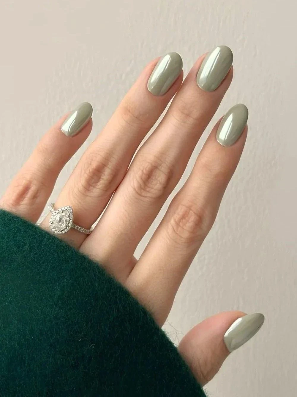 Тёплый зелёный с золотистым подтоном создаёт ощущение света и спокойствия. В новогоднем маникюре 2026 Acacia смотрится утончённо и свежо, особенно в глянцевом исполнении. Он идеально подходит для овальных ногтей средней длины и становится стильной альтернативой классическому нюду.