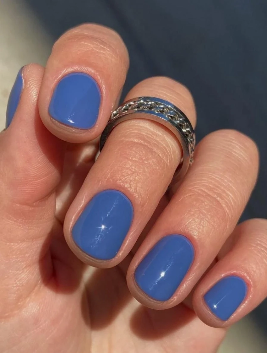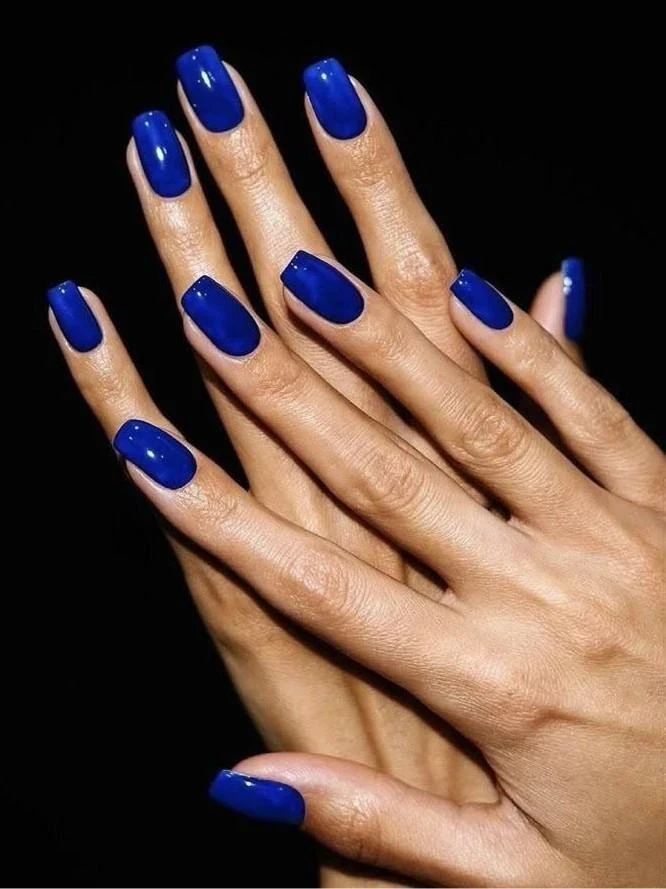 Морской синий — один из самых выразительных оттенков сезона. Он заменяет привычные тёмные тона, добавляя образу собранность и внутреннюю силу. Маникюр на Новый год 2026 в цвете Marina визуально вытягивает пальцы и подчёркивает тон кожи.