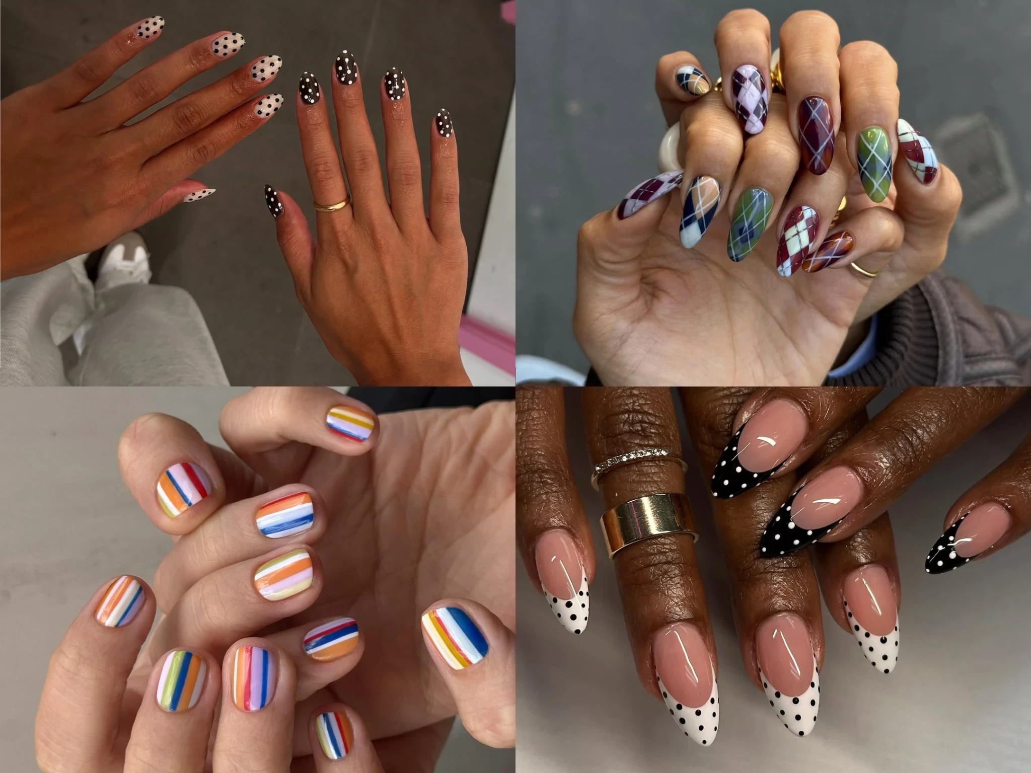В 2026-м мода буквально одержима принтами — и ногти не стали исключением. Полоска, клетка, горошек, аргайл, тартан и даже игривые мотивы в стиле «бэмби» уверенно перекочевывают с тканей на ногтевые пластины.