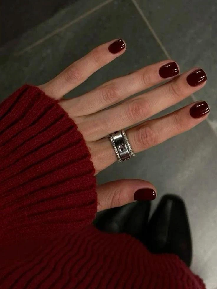 Бордовый оттенок добавляет маникюру драматизма и выразительности. В сочетании с металлическими акцентами или темными древесными тонами он символизирует стабильность и целеустремленность. Такой цвет идеально подходит для зимнего периода, когда особенно важна уверенность в своих намерениях и финансовых планах.