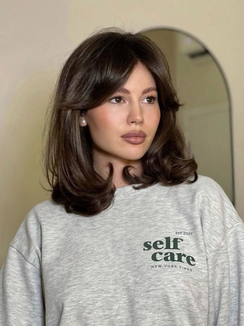 Самый универсальный вариант 2026 года. Такая челка легко вписывается в любую длину, добавляет пластичности и не требует идеальной укладки.