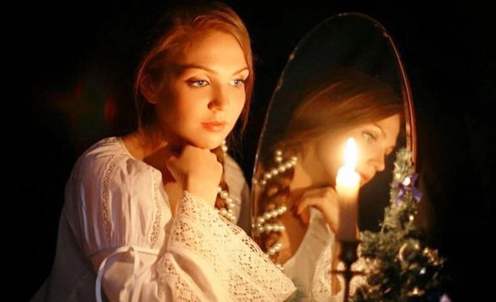 В полночь поставьте два зеркала друг напротив друга на стол, накрытый белой или черной скатертью. По бокам зажгите свечи — зеркала образуют бесконечный коридор. Произнесите: